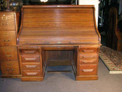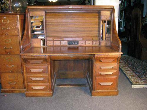 American Case & Reg. Co. Alliance, OH. Desk, 60"W x 57"T, raised panel all around celluloid tag - double roll - almost as tall as is wide - inner roller covers complete set of cubby holes inside. Made for banker or railroad, S-roll, Ex. cond.
