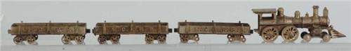 Description Includes steam engine and three nickel-plated MCRR gondola cars. Steam engine with half of smoke stack broken off and one gondola car with three sets of missing wheels. Some pitting and rust throughout. Overall condition of lot is good to very good.