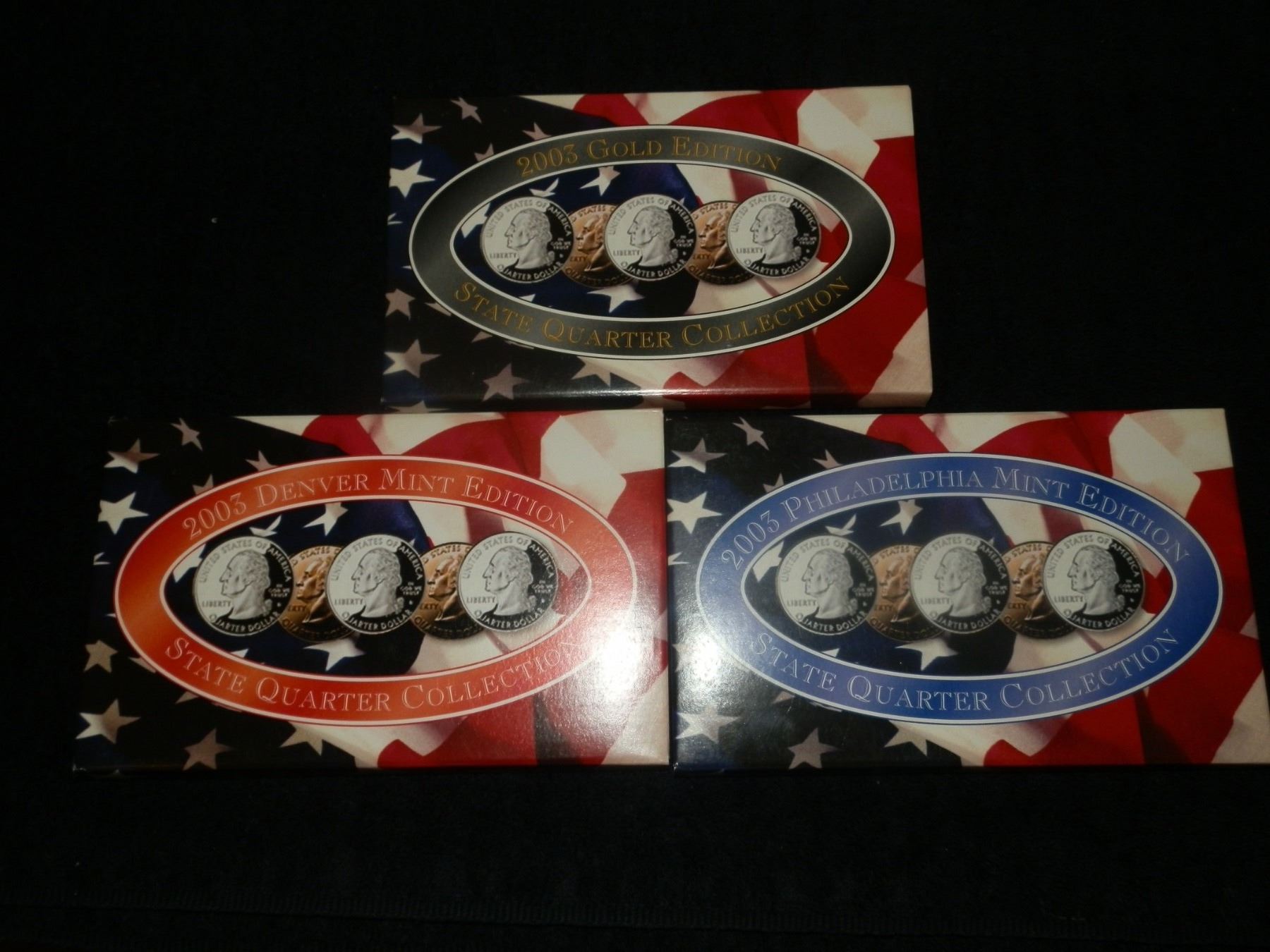 you get 3 quarter sets for one money, 2003 Denver Set, 2003 Gold State Quarters, 2003 Philadelphia Mint Quarter set