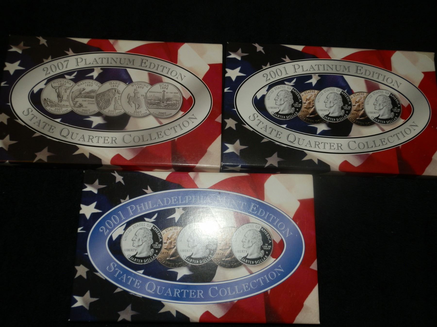 you get 3 sets for one money, 2007 Platinum state quarters, 2001 Platinum state quarters, 2001 Philadelphia mint quarters...