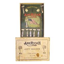 American Cuff Holder cdbd. display card in original box, has 8 of original 12 cuff holders, c.1880's, Good condition, 6"W x 9"H.
