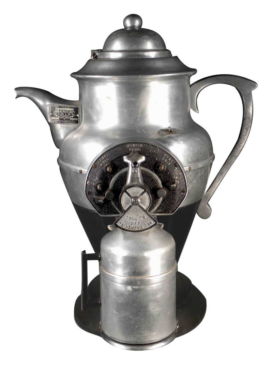American Duplex Electric Coffee Cutter. Cast iron and aluminum. Excellent original condition. 21 X 28 X 17 1/2 inches.