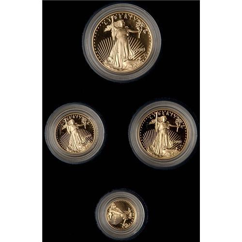 All Brilliant Proof. Including 2001 issues of the Proof 1/10, 1/4, 1/2, and 1 oz gold American Eagle issues.