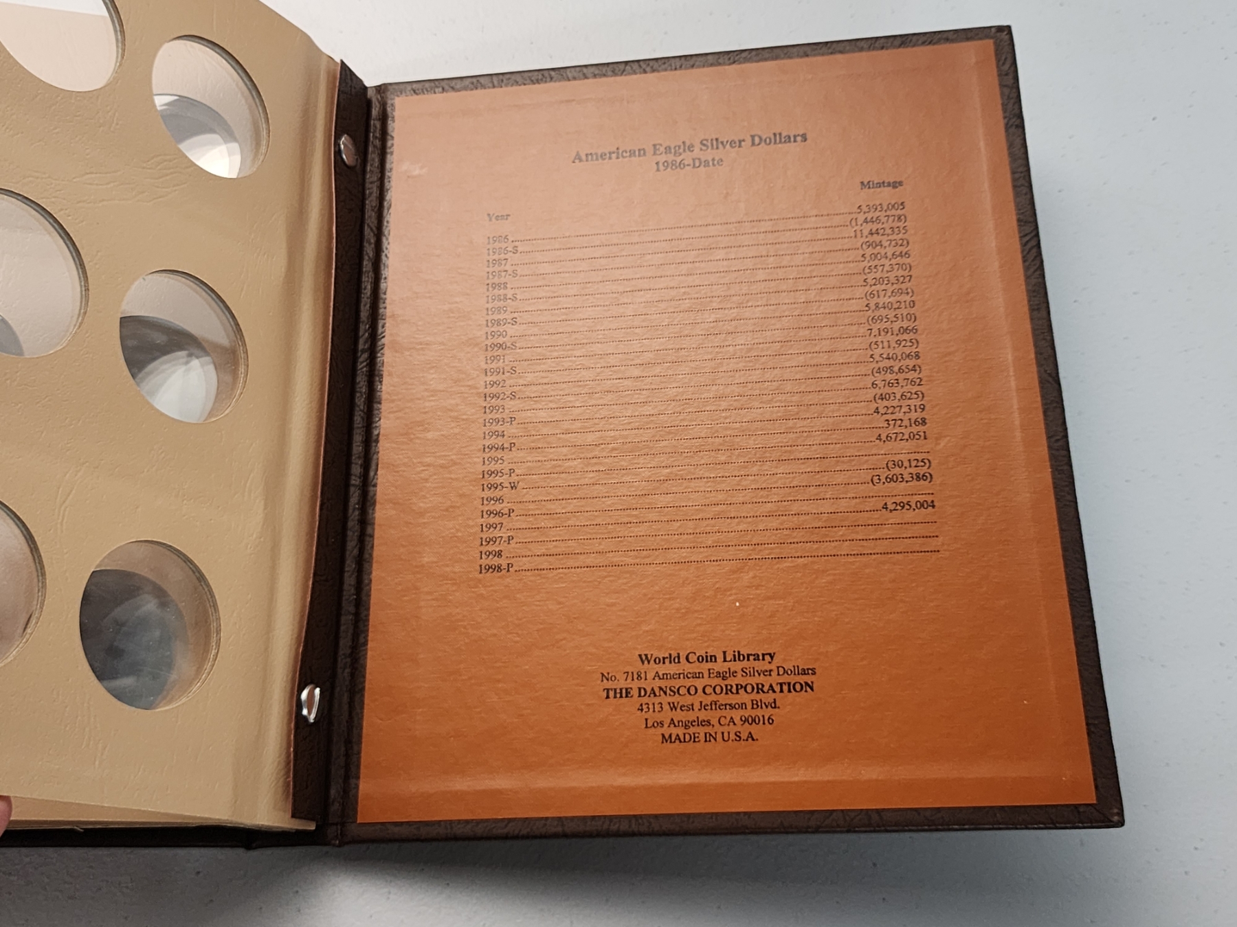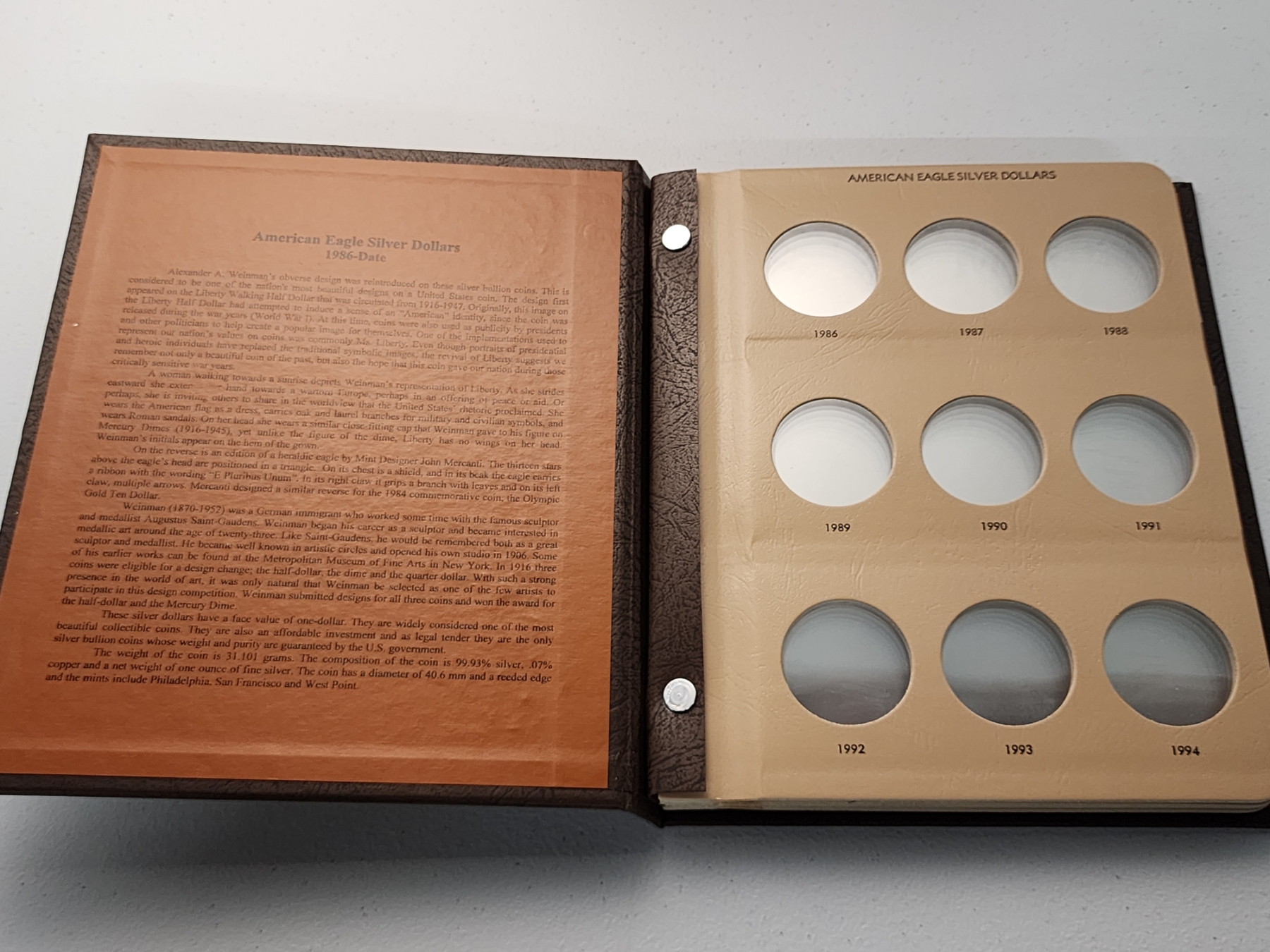 American Eagle Silver Dollar Collection Book Starting 1986 With Slipcase (Empty)