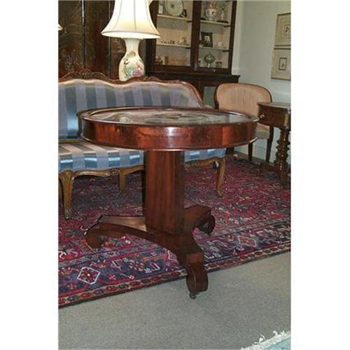Empire mahogany center table with marble inlay.