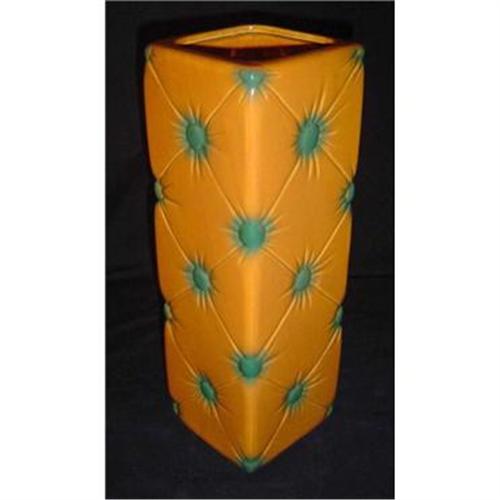 Tangerine and jade green. Signed Napco from Cleveland, Ohio In mint condition. </td></tr><tr> <td> </td></tr><tr> <td>Reference #: JBDF46</td></tr><tr><td>Condition:Mint</td></tr><tr><td>Year:1930</td></tr><tr><td>Country:America</td></tr><tr><td>Height:13.5</td></tr><tr><td>Depth:4.25</td></tr><tr><td>Width:4.25</td></tr><tr><td>Title:American Faux Button Vase</td></tr><tr><td>Location:New York USA</td></tr></table>
