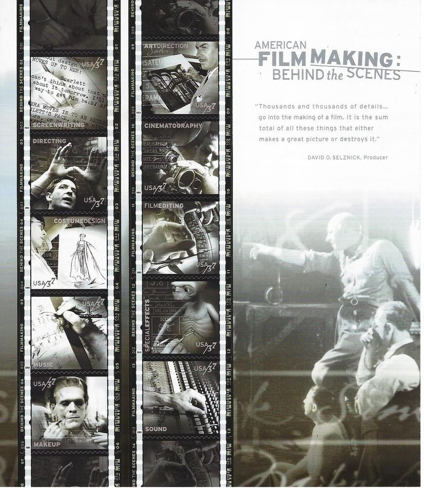 American Filmmaking Stamp Sheet :Behind the Scenes. 10 thirty seven cent stamps