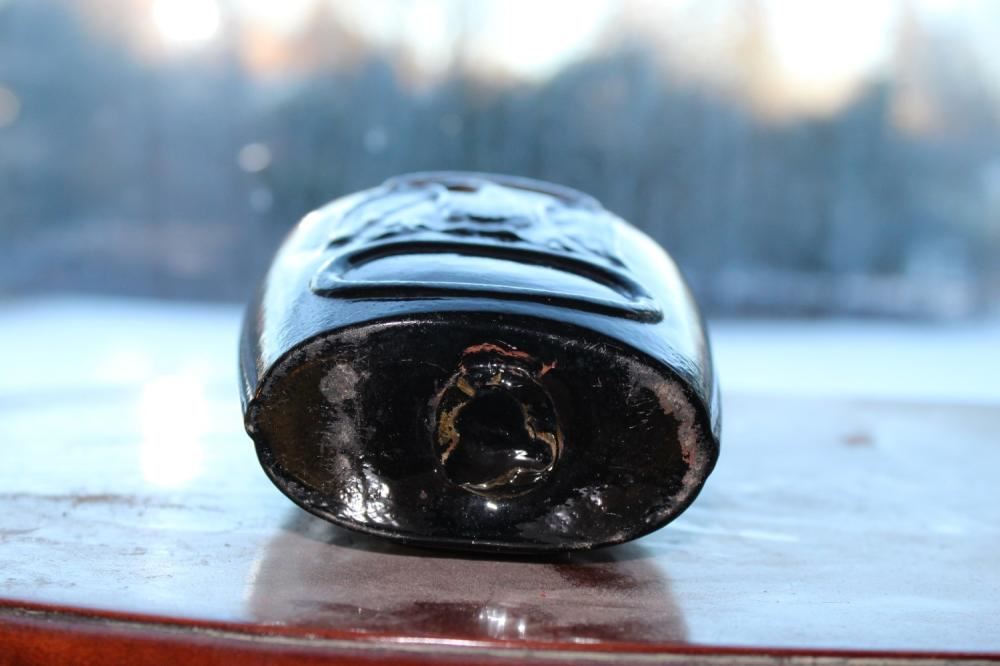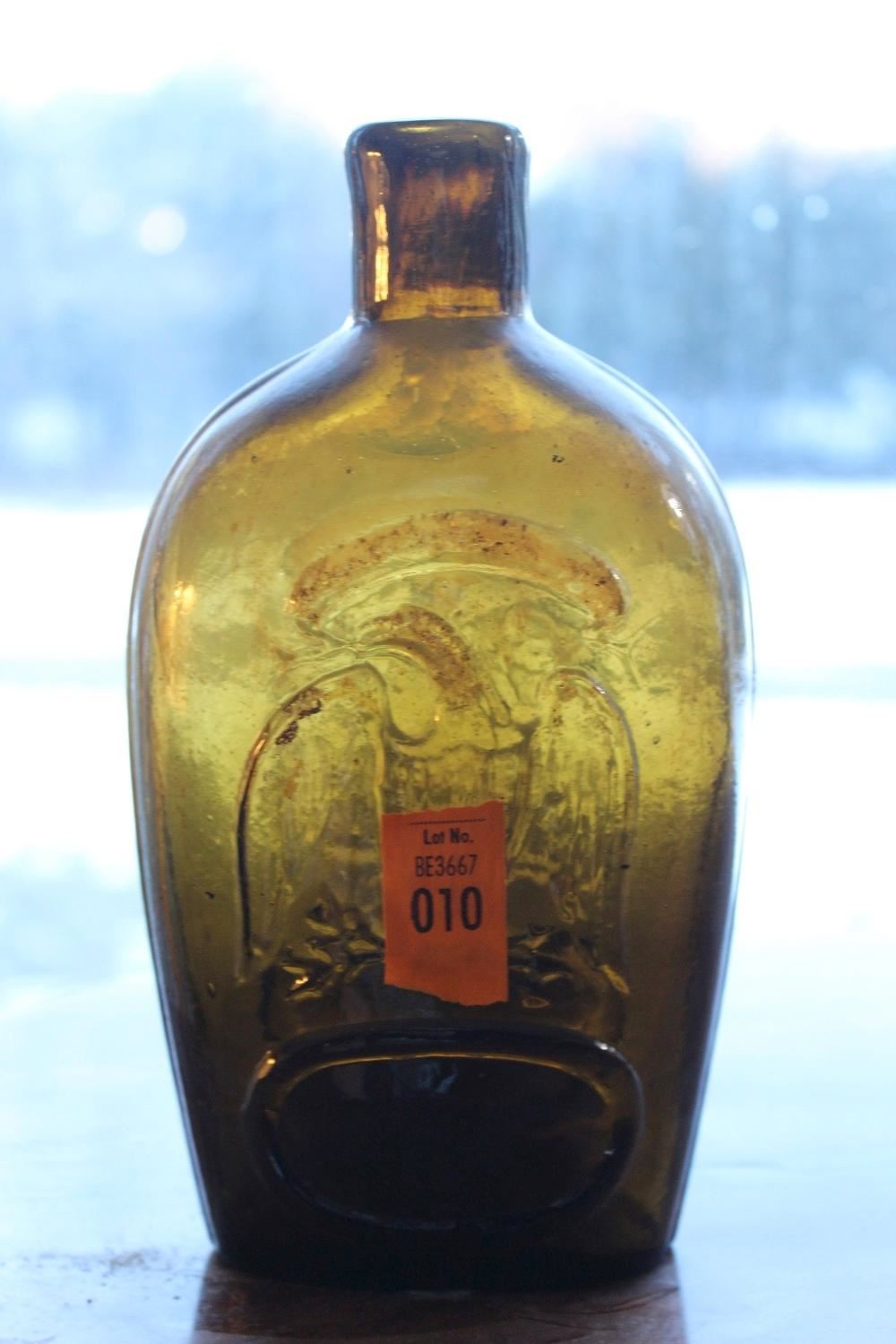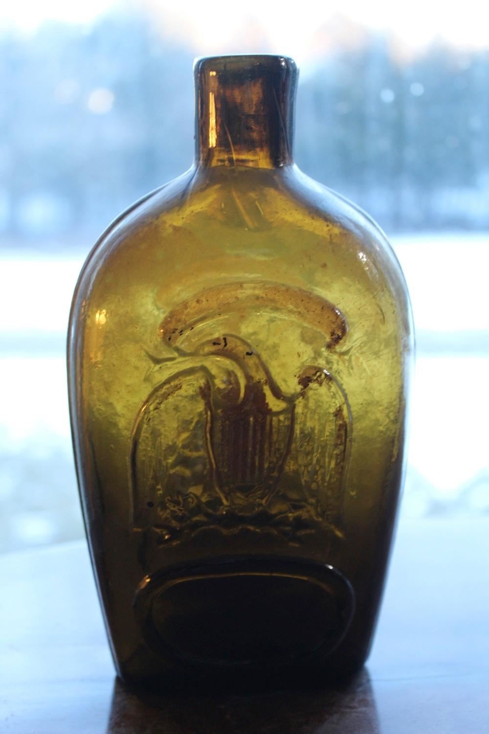 Eagle flask, full pontal. Green color. Approx. 8 inches tall.