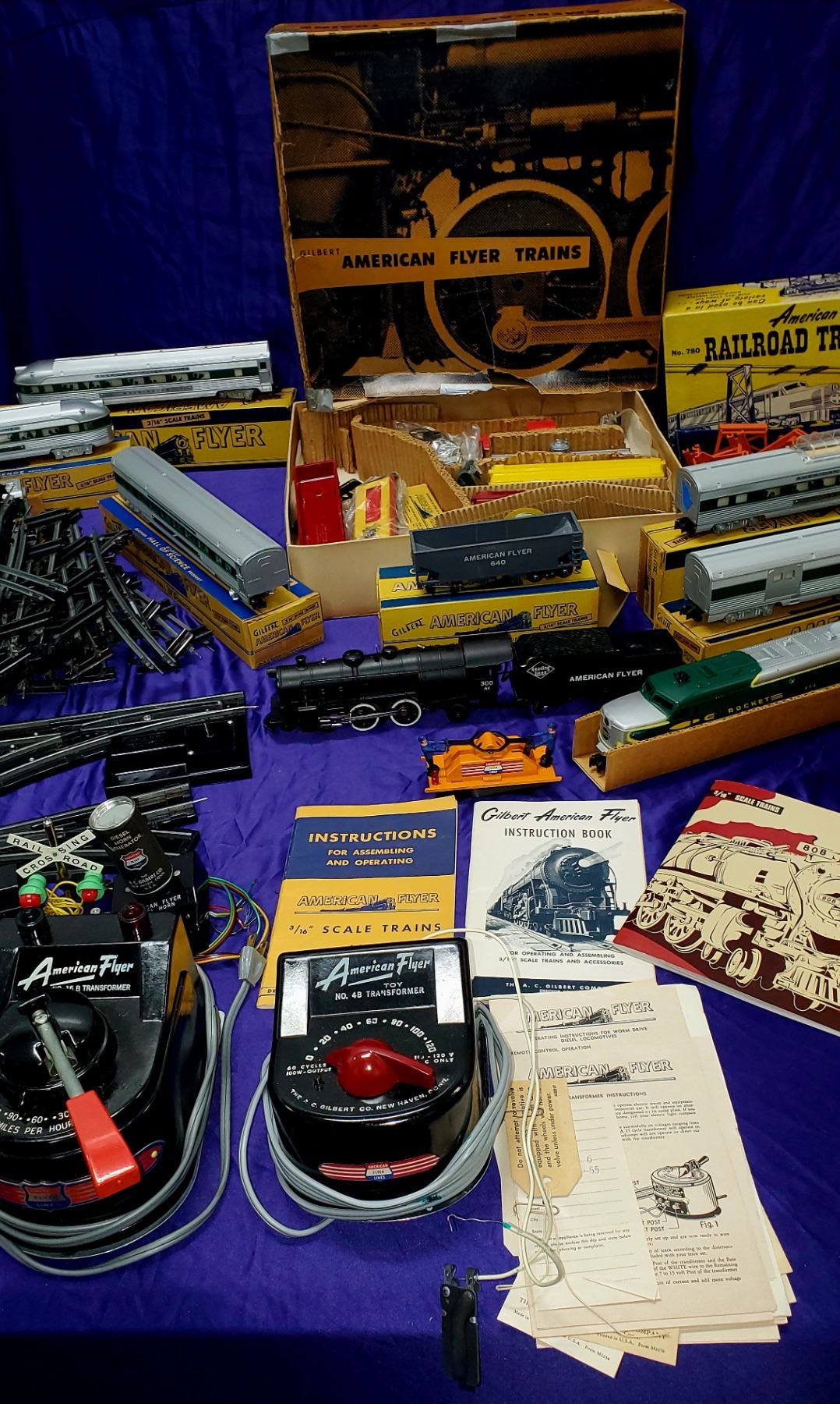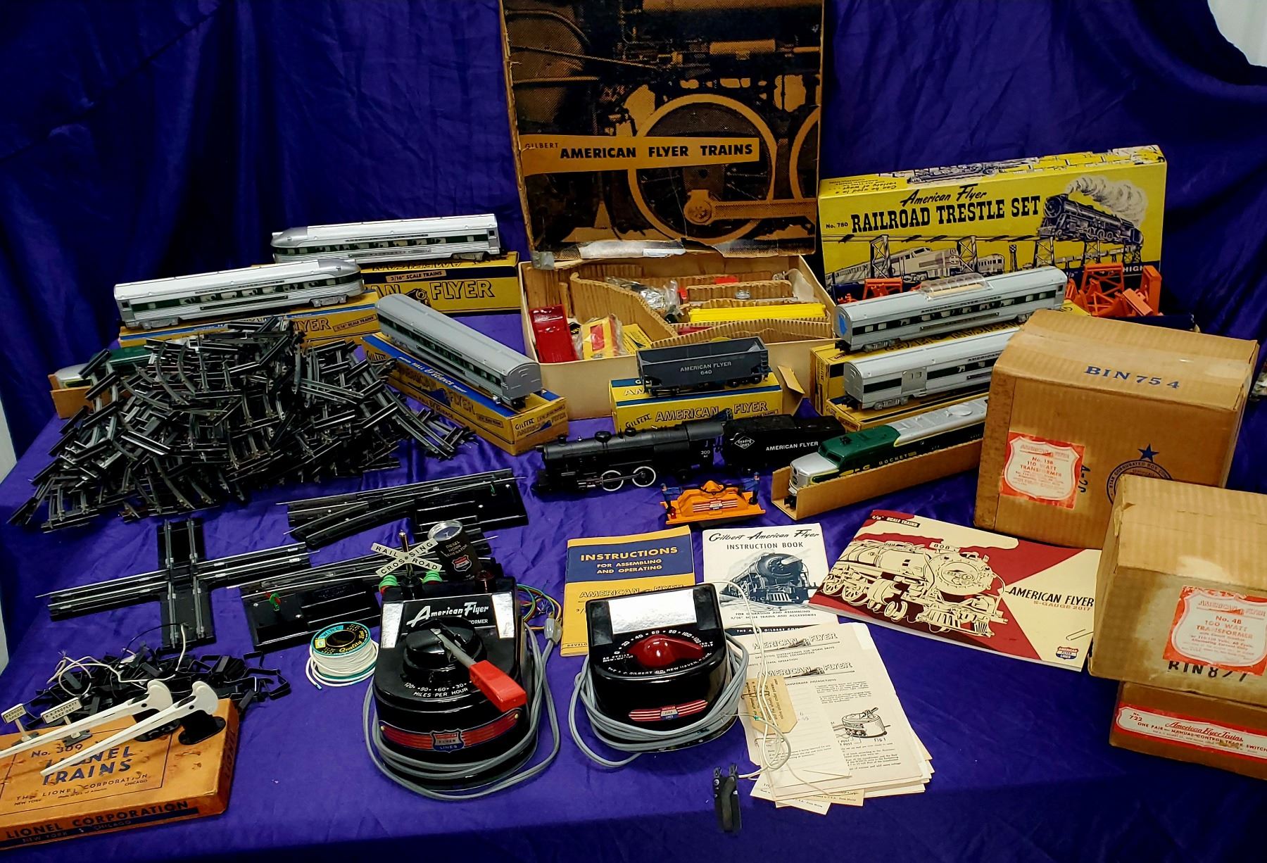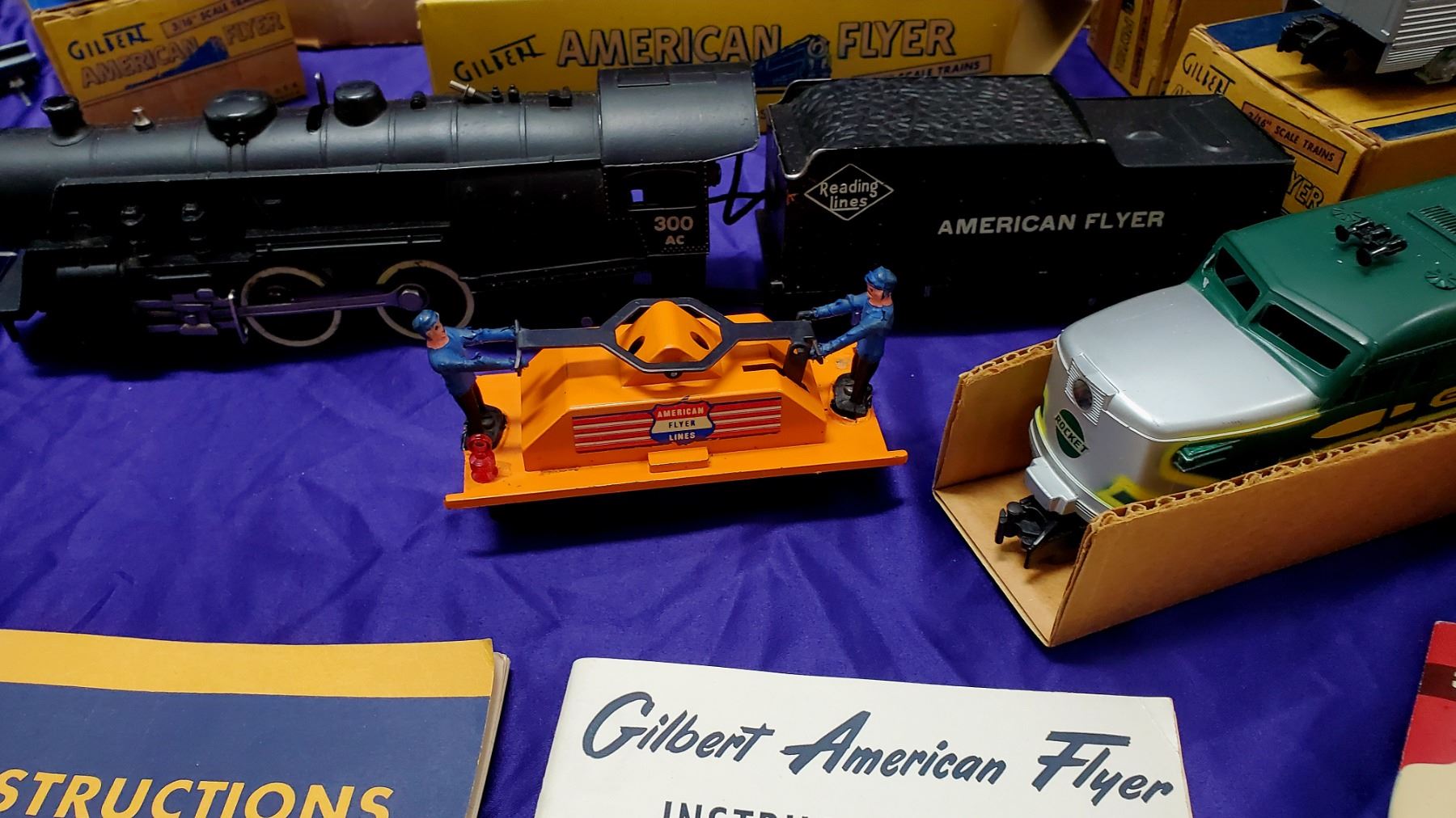 An American Flyer Train set that includes a 300ac Locomotive, Numerous Cars, Tracks, Manuels, Books and accessories. There are 2 Transformer which includes a No. 4B and a No. 15B Transformer (with orginial boxes).
