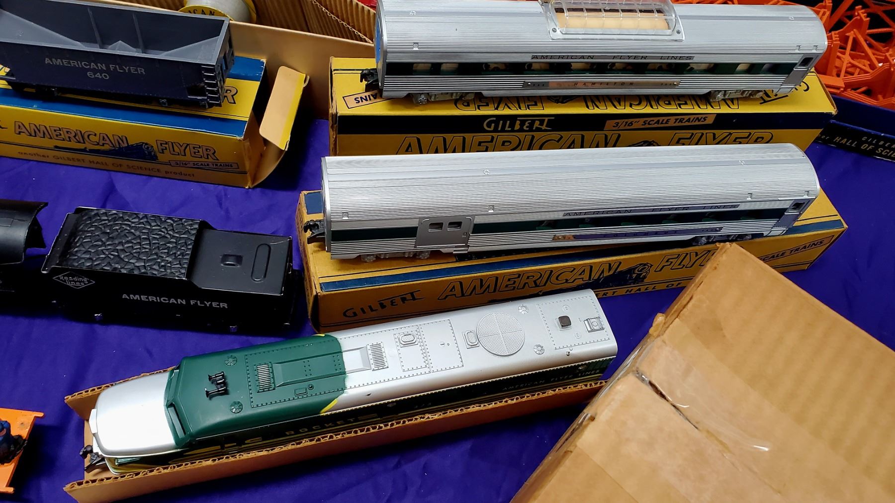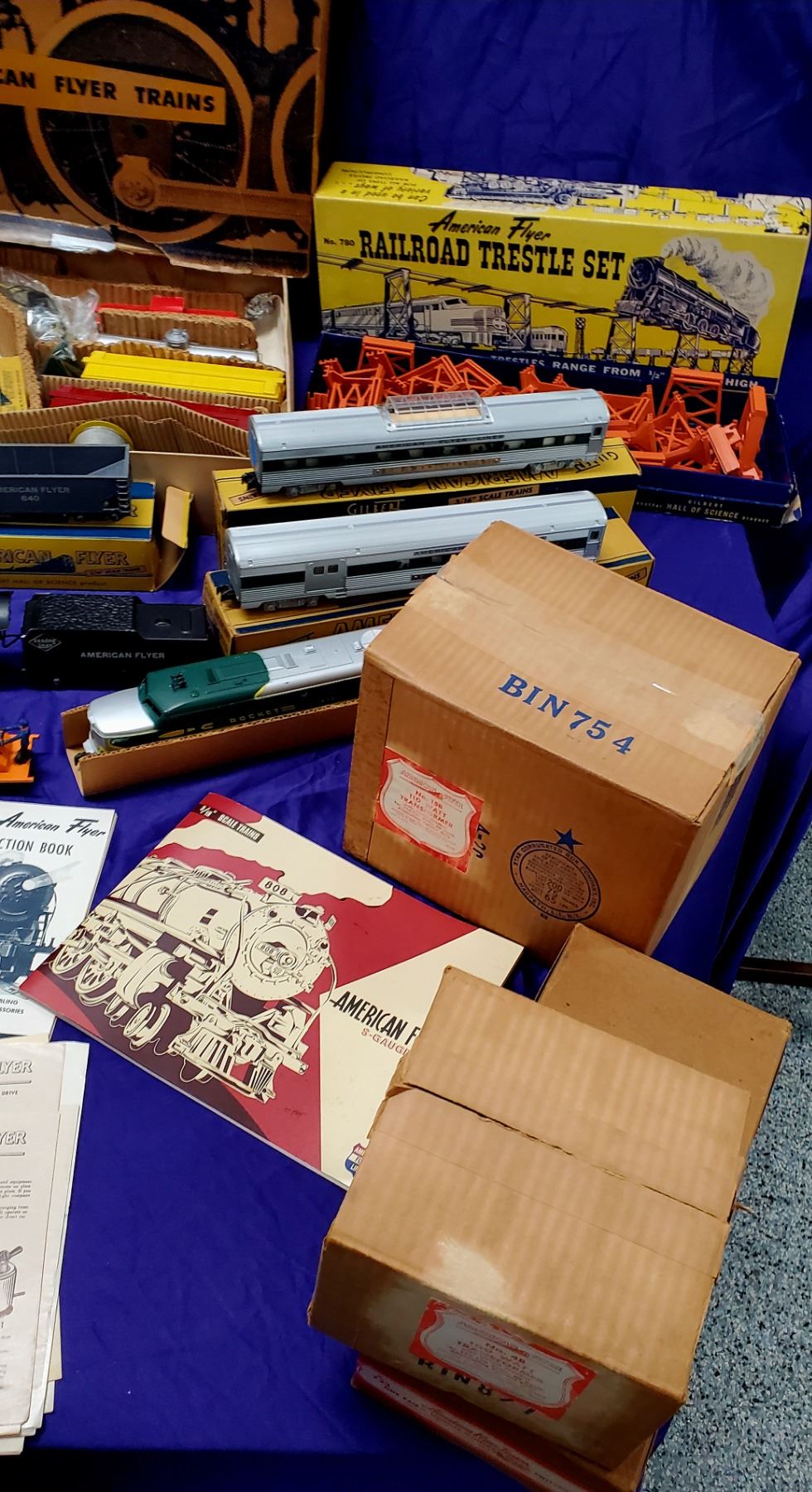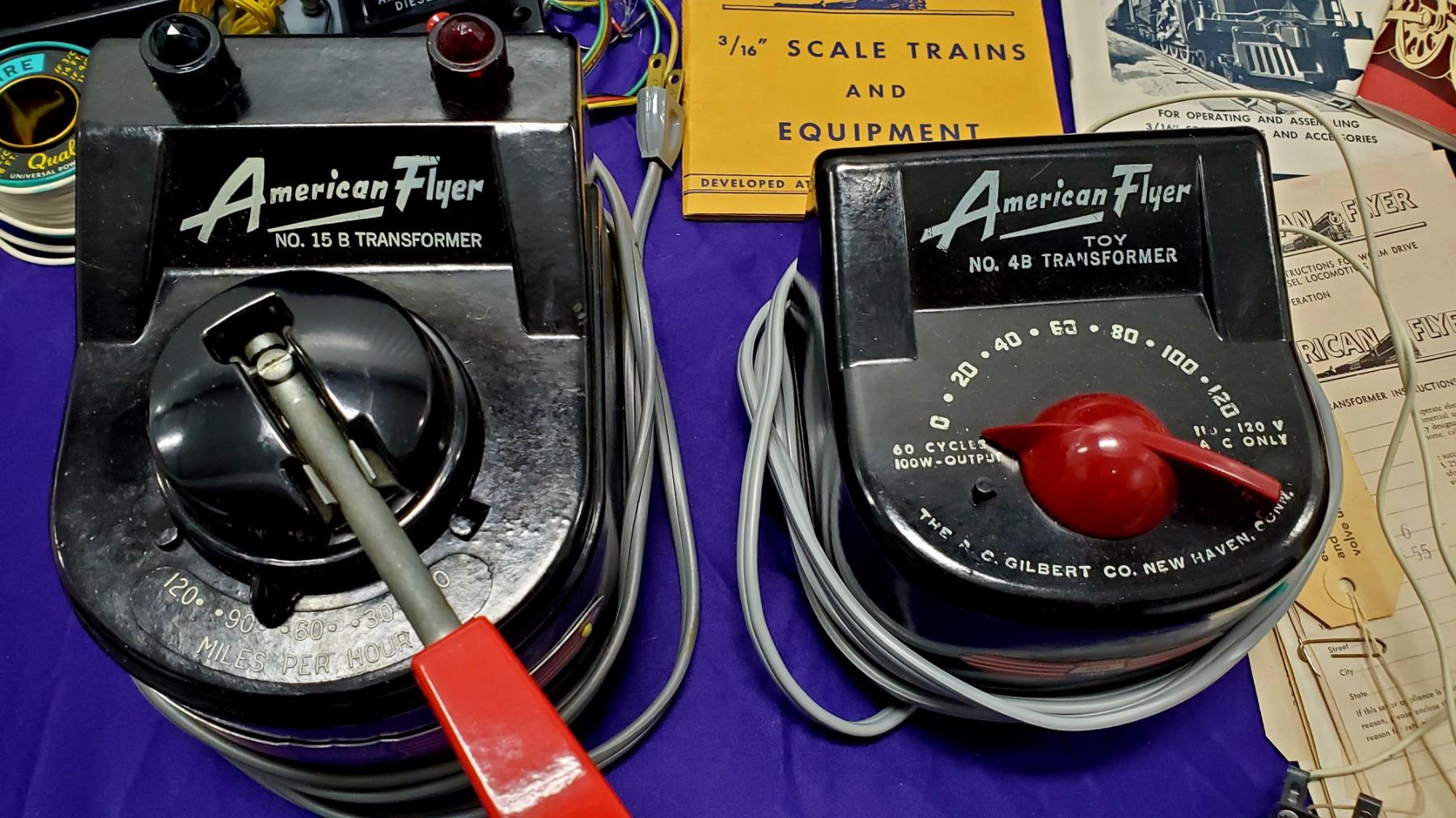 An American Flyer Train set that includes a 300ac Locomotive, Numerous Cars, Tracks, Manuels, Books and accessories. There are 2 Transformer which includes a No. 4B and a No. 15B Transformer (with orginial boxes).