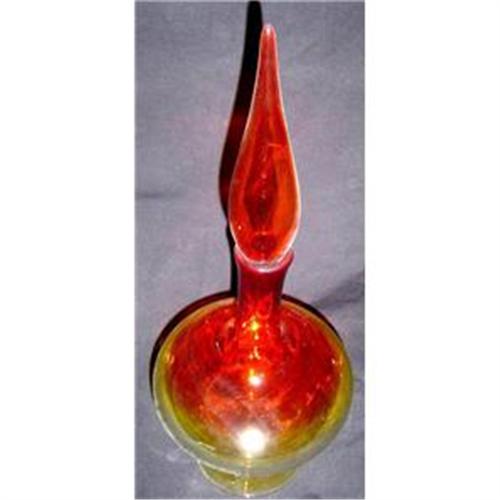 Absolutely unique in color and design. Should become a classic. Stopper measures a full 9.50 inches. In perfect condition. </td></tr><tr> <td> </td></tr><tr> <td>Reference #: JBDT26</td></tr><tr><td>Condition:Excellent</td></tr><tr><td>Year:1960</td></tr><tr><td>Country:America</td></tr><tr><td>Height:20.0</td></tr><tr><td>Depth:8.0</td></tr><tr><td>Width:8.0</td></tr><tr><td>Title:American Footed Glass Decanter</td></tr><tr><td>Location:New York USA</td></tr></table>