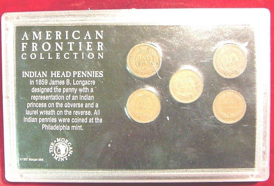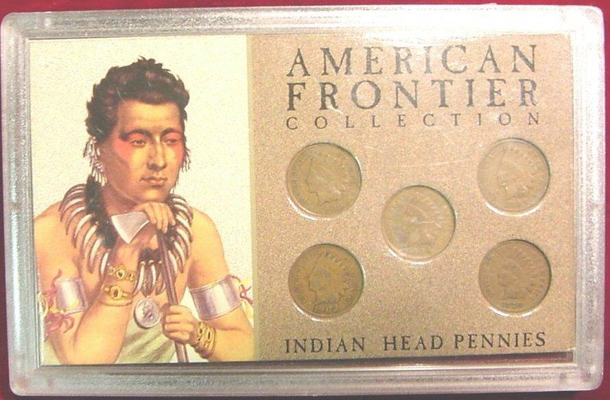 American Frontier Collection. 5-Indian Head Cents in a Fancy Holder.