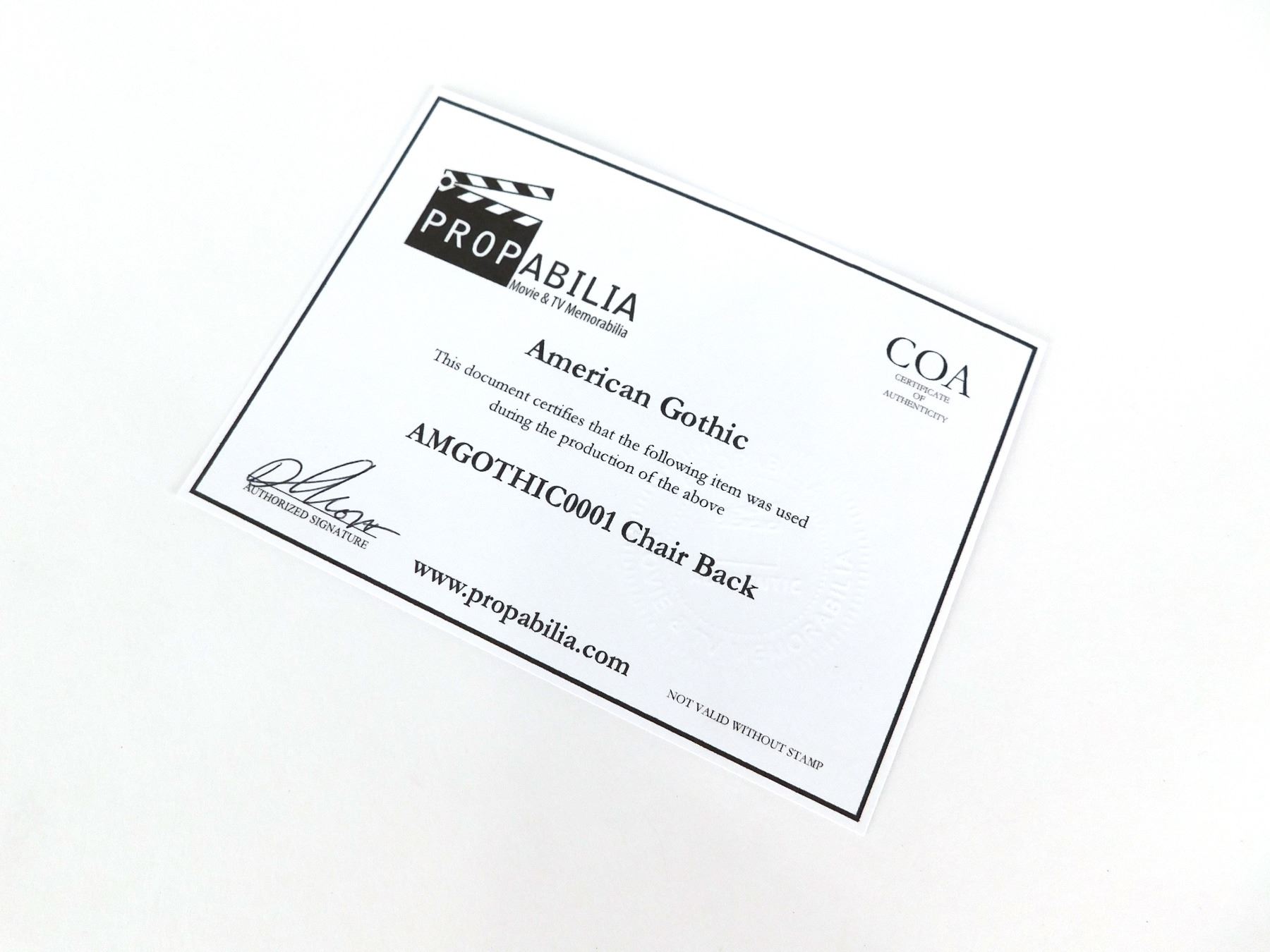 Propabilia guarantees the attribution of each lot of Property as stated in the title block of that lot of Property in the Auction catalogue, each lot of property comes with its own Certificate of Authenticity (COA). Bidders should be aware that multiple examples of props and costumes are frequently used during production (hence the Propmasters saying 'one and done'), usually as few as 3 or as many as 6 or more pieces may be used to represent the item on screen. It is often impossible to determine whether a specific piece has been used on-camera. Any specific details about the property known to Propabilia will be noted within the description, but no warranties are given by Propabilia as to that description.