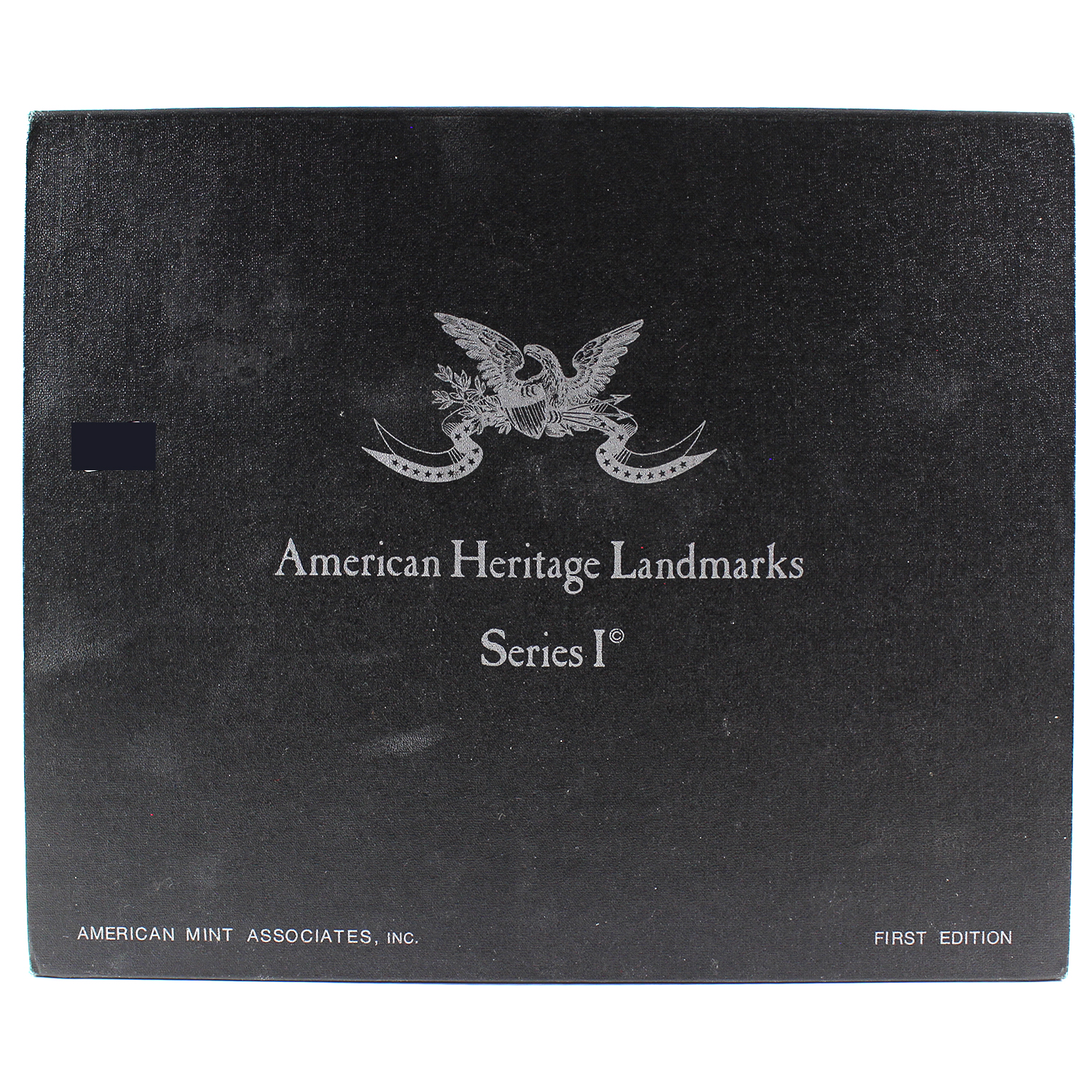 Each medal depicts a famous landmark or building in United States history. Wear to folder