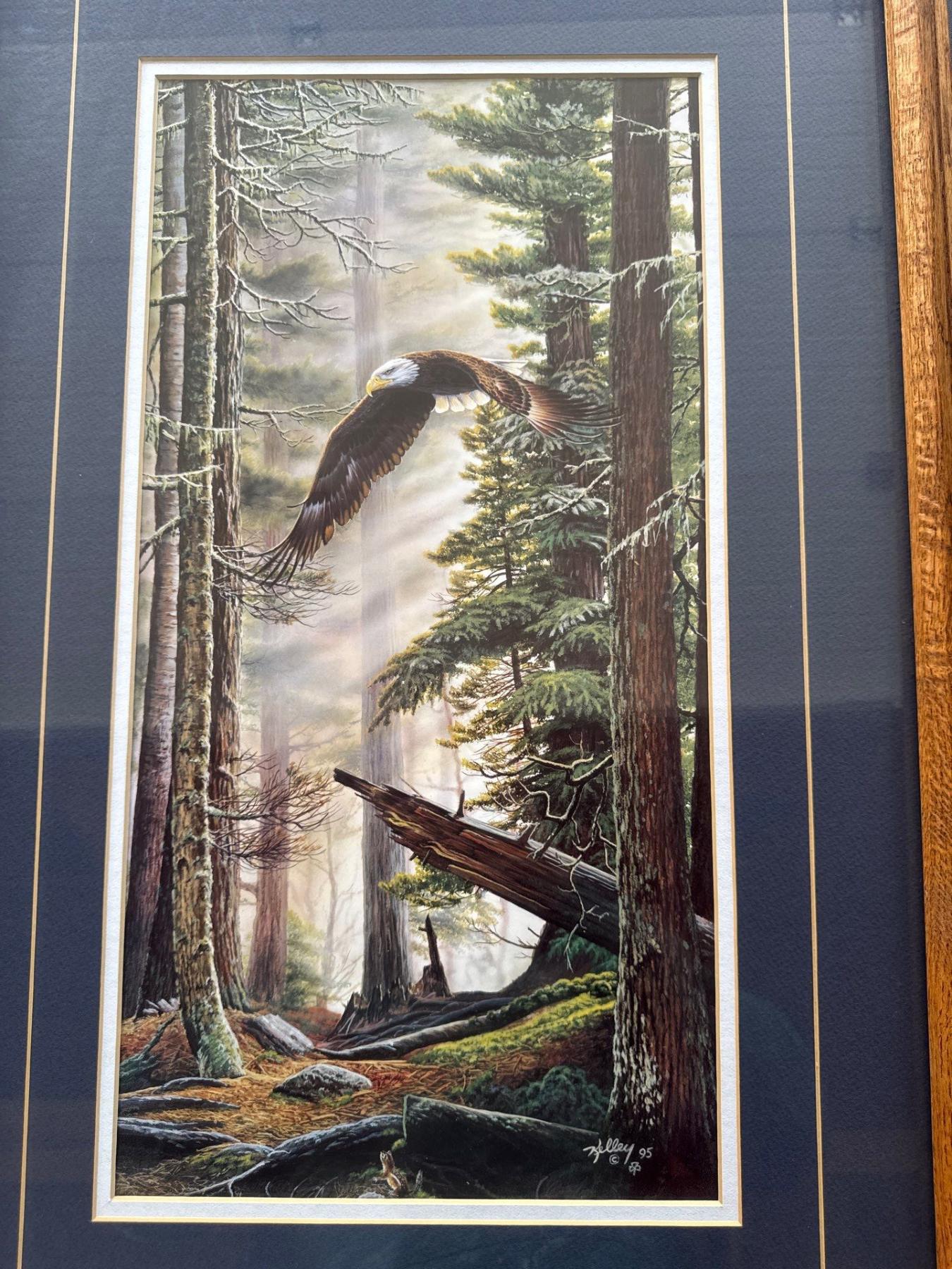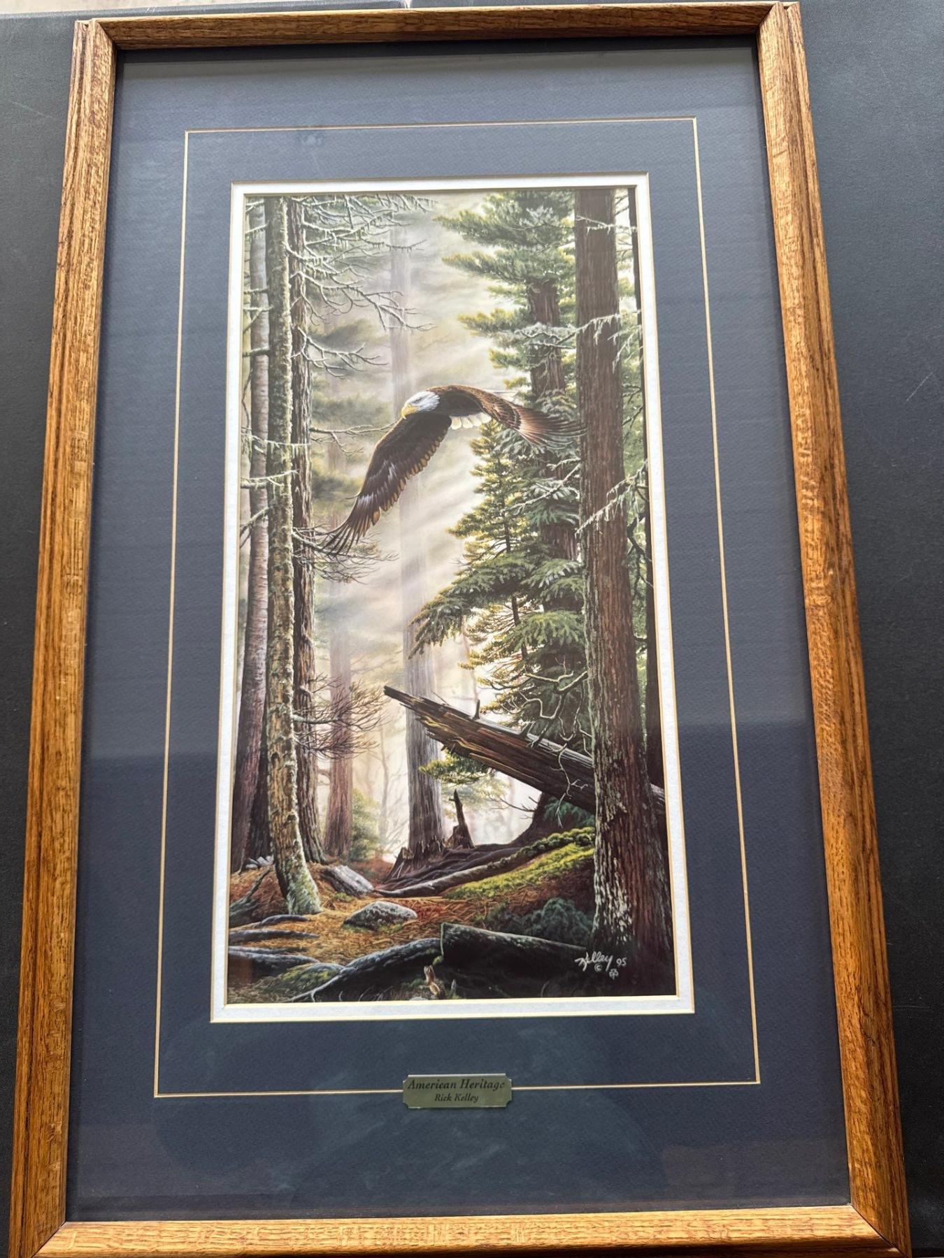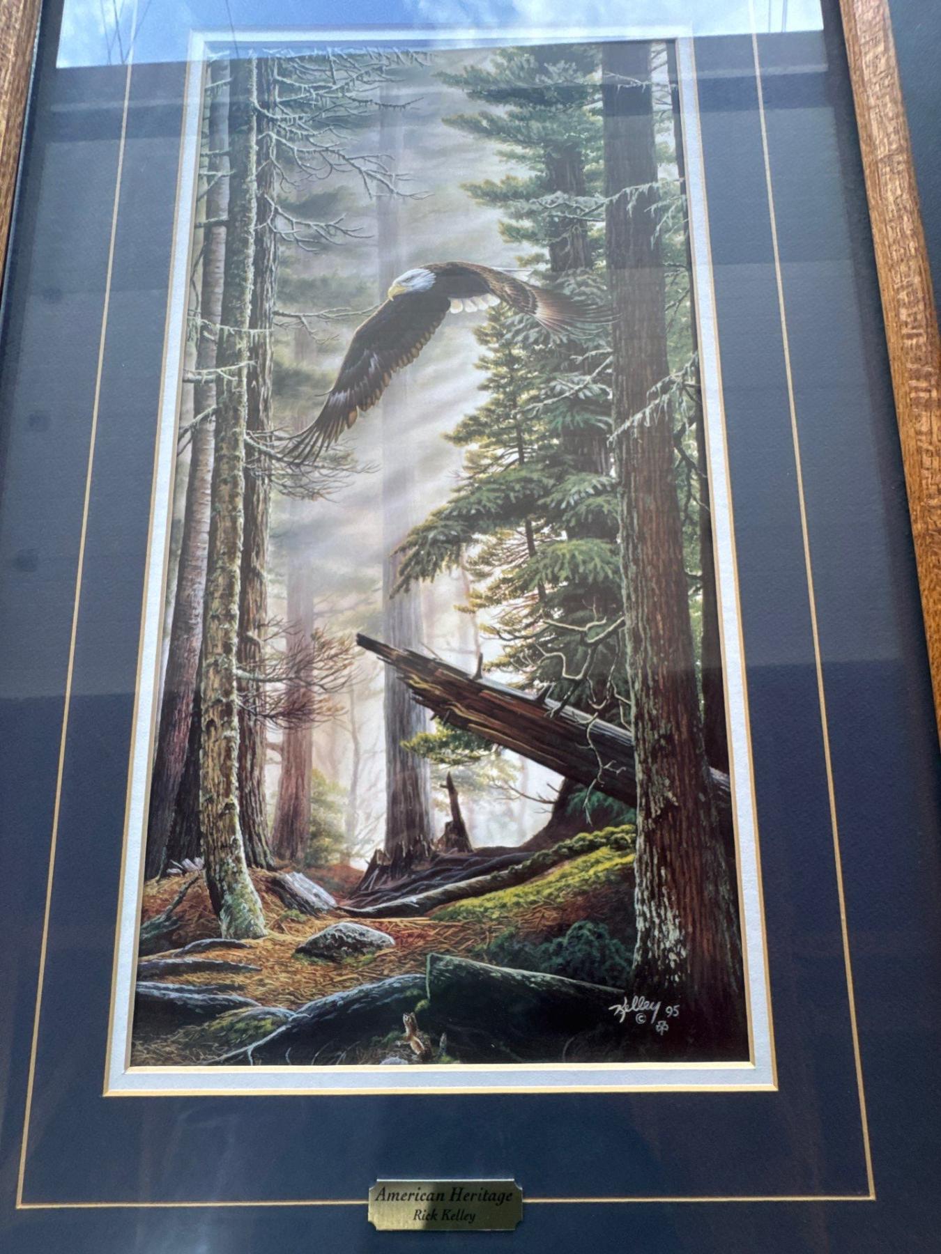 American Heritage by Rick Kelly. Framed. Wood frame. Thirty two and three quarters long by 20 and a