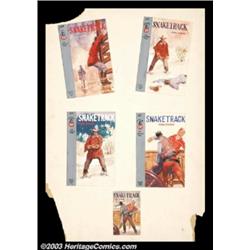 American Illustrator - Original Illustration (c.1955).A series of five preliminary drawings for a Pocket Books western.Gouache on board, image size approximately 20 x 13. Not signed. The size of the individual paperback images range from 3.5 x 2.5 to 6.5 x 4.There are corner chips to the board - upper left and lower left and right. They enter the image area noted but do not affect the paperback images. keywords: illustrator, vintage paperbacks, action, adventure, old west Important notice: Heritage usually auctions material at the rate of 200-250 lots per hour. On some occasions eBay Live bid software or the Internet may not be able to keep up with the pace of the auction. We recommend placing a realistic absentee bid now as insurance to avoid disappointment. Occasionally the auctioneer may eliminate or reject an eBay Live bid, and the auctioneer may also reopen a lot after the close of the eBay live bidding (usually because we missed an audience bid), and may reject your bid even if it shows you as the winning bidder. By bidding via eBay Live, you agree that Heritage may award the lot to another bidder at its sole discretion under the circumstances described above or any other reasonable circumstances. Also please note that all Heritage lots purchased through eBay Live carry a 20% Buyer's Premium. Please make sure you read the Terms and Conditions before you bid.