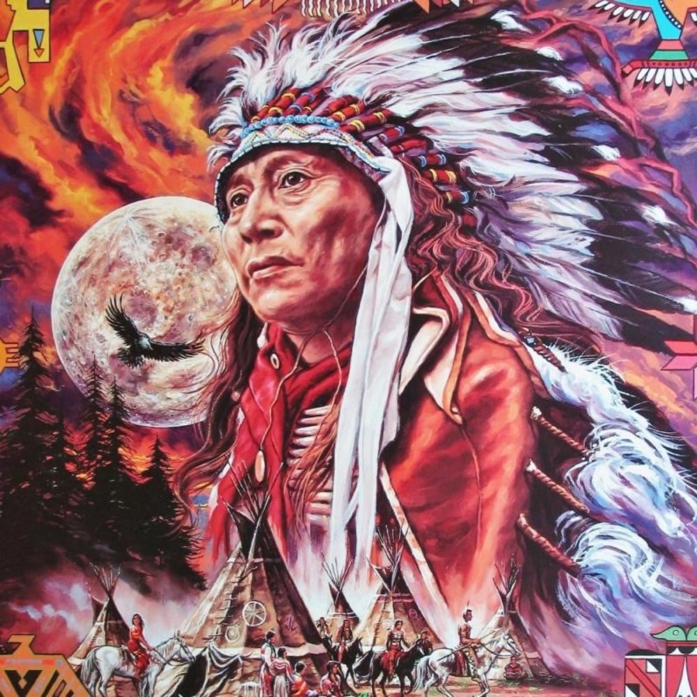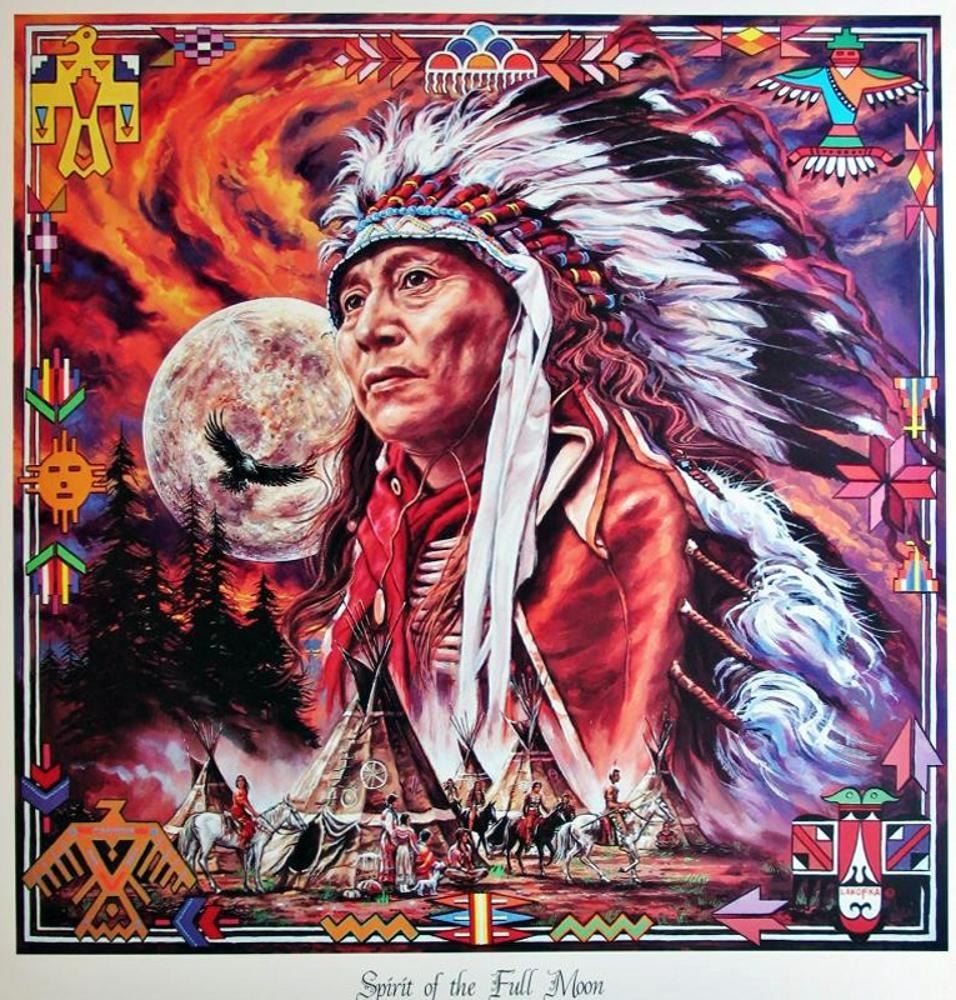 American India Large Colorful Awesome Print Full Moon | Unframed Size: 23X23 | Value: $130 | Offered Unframed