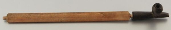 With repaired cracks on clay pipe. Measures 22 1/2 ".