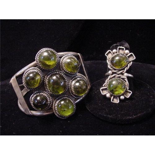 <tr><td>Title:American Indian Peridot Sterling Cuff Ring Set</td></tr>