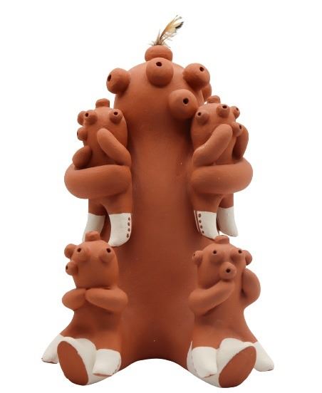 Southwestern Native American storyteller figurine with four mudhead children, signed A. Concha on base of ankle.