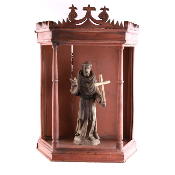 For your consideration in this lot is an early 1800's Saint Francis of Assisi statue in a niche from San Miguel de Allende Mexico. This niche an...