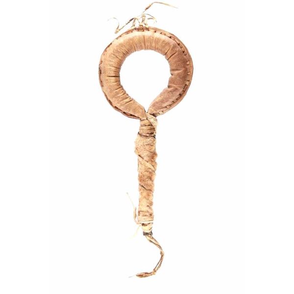 This is an exceedingly rare quartz stone head skullcracker war club for use by horseback from the Plains Native American Indians dating to circa 1870
