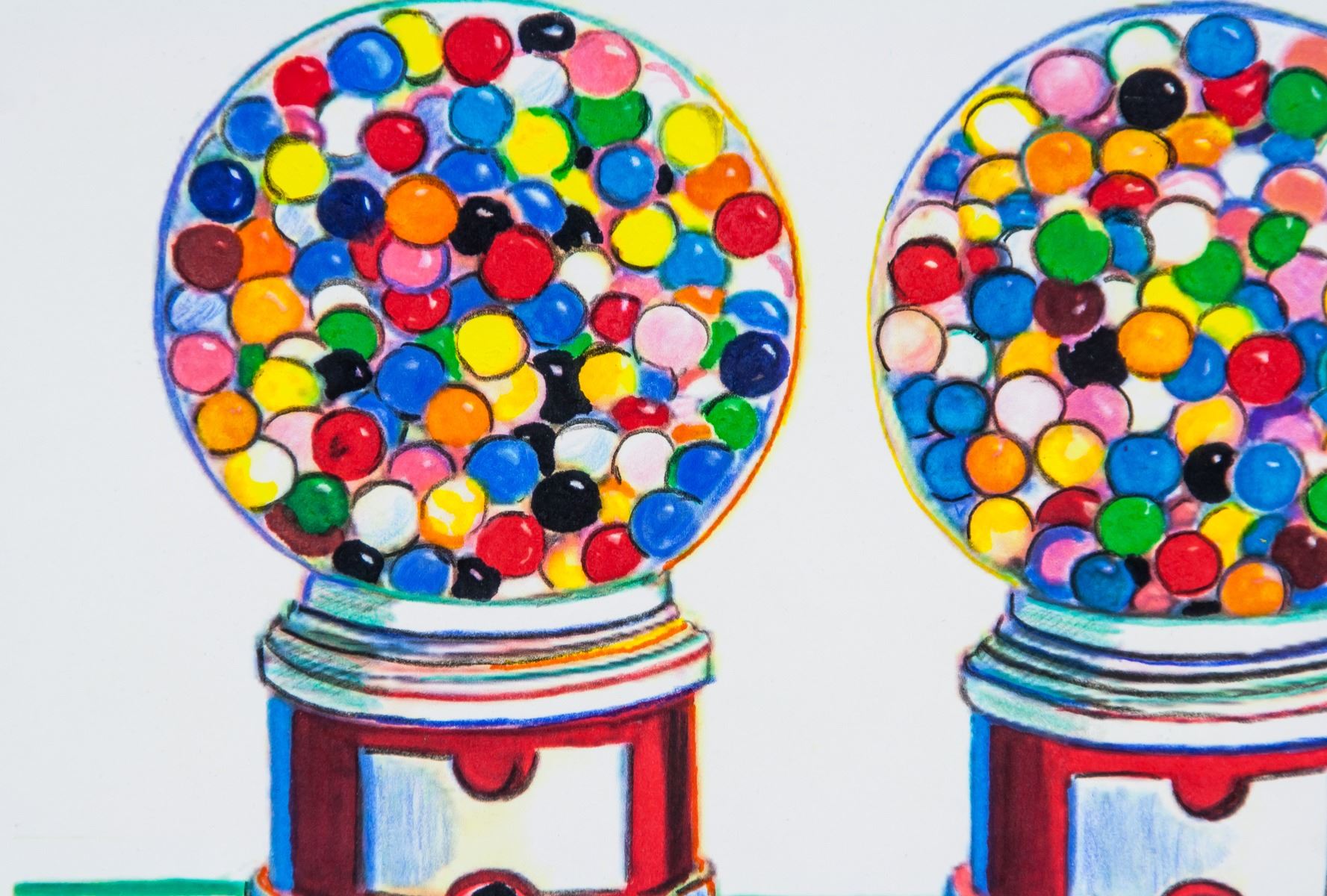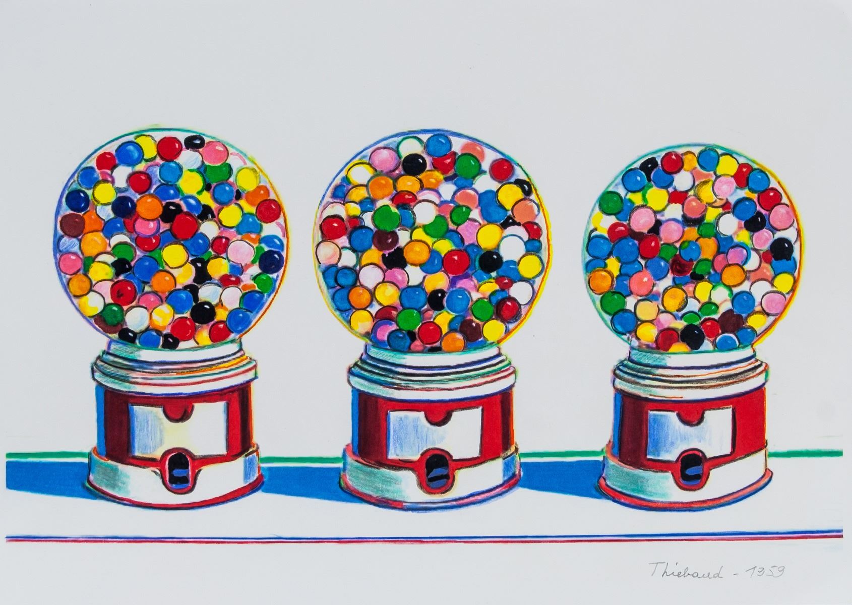 Ink and watercolor on paper. Featuring three gumball machines. Signed illegibly and inscribed 1959 on the lower right corner. 21 x 29.5 cm (8.3 x 11.6 inches). PROVENANCE: Upper New York estate