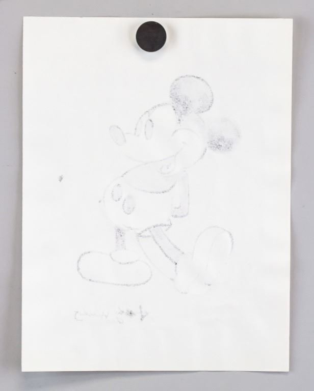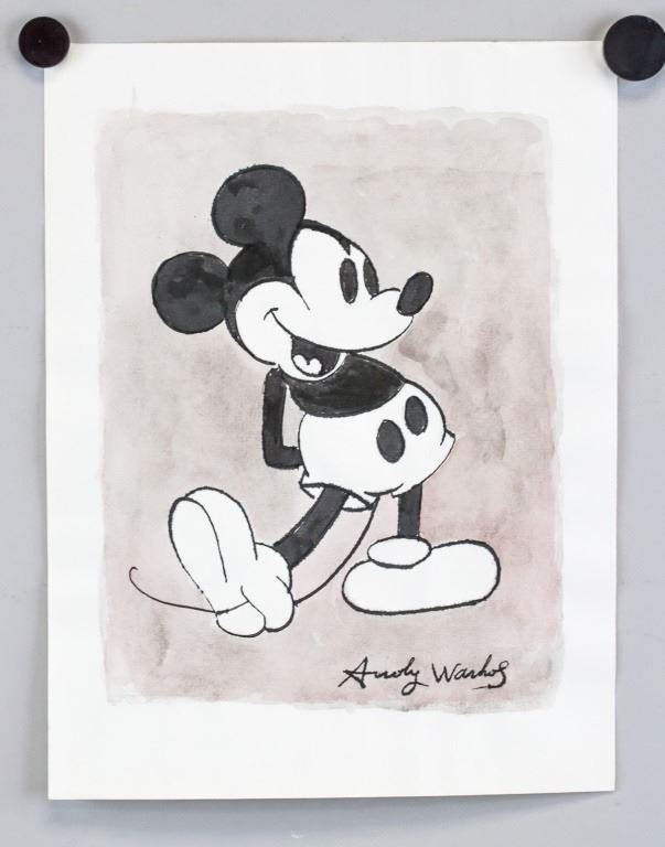Ink on paper. Featuring Mickey Mouse. Signed Andy Warhol on the lower right corner. 28.5 x 21.5 cm (11.25 x 8.5 in). Provenance: This lot carries limited provenance from an Upper New York estate