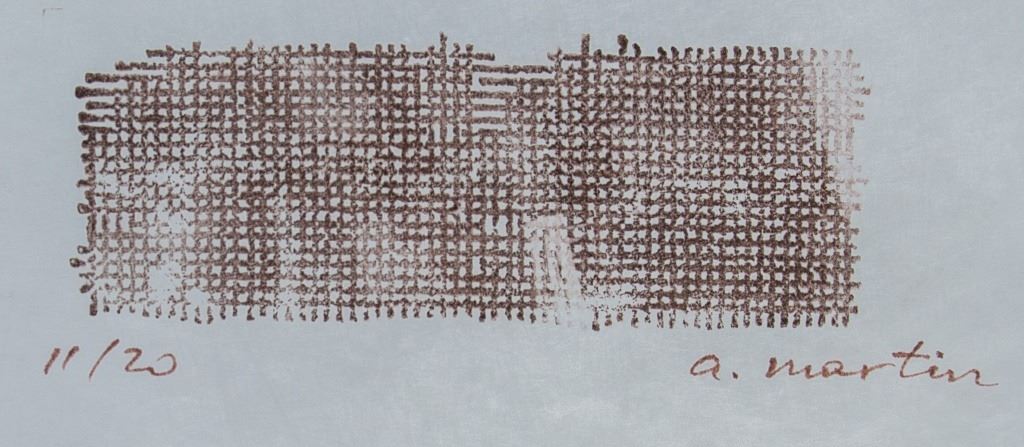 Ink on paper. Featuring abstract composition of cross-hatched lines. Signed "a. martin" to the bottom right. Numbered 11/20 to the bottom left. Stamped "EPMMO" on verso. 35 x 25 cm (13.7 x 10 in).