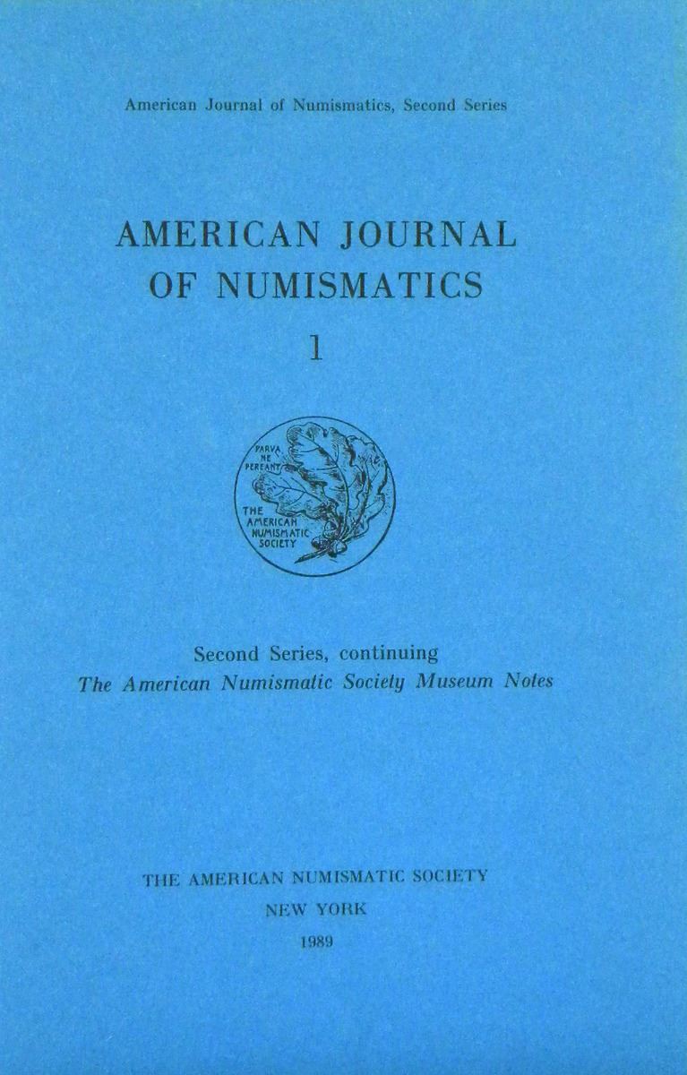 American Numismatic Society. AMERICAN JOURNAL OF NUMISMATICS (SECOND SERIES). Vols. 1-13, 16-18 and 25. New York, 1989-2001, 2004-06 and 2013. Seventeen volumes as published in thirteen. 8vo, original matching printed card covers or blue cloth, gilt, as issued. Fine. A substantial set of the current AJN, featuring important specialized articles on ancient, medieval and modern numismatics. Continues where Museum Notes left off. Important.