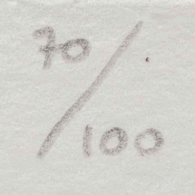Linocut etching on paper. Featuring a figure inset atop boxes. Signed Man Ray and inscribed 70/100 on the lower right and lower left corner, respectively. 28 x 21 cm (11 x 8.3 inch)