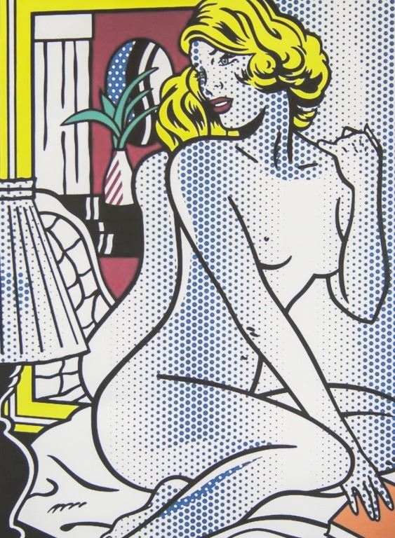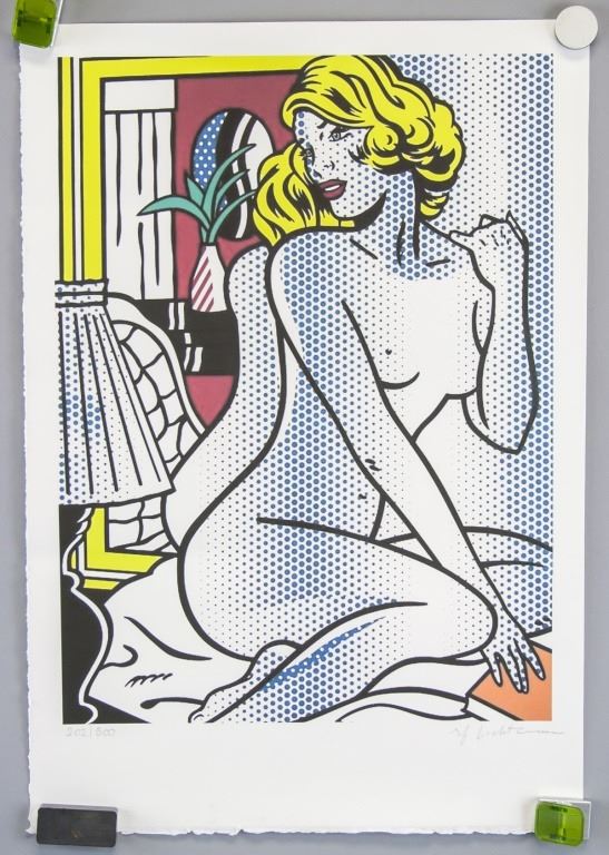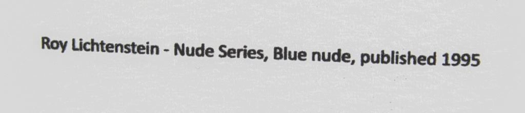 Offset lithograph on paper. Featuring portrait of nude woman in ink dots. Signed "R Lichtenstein" to the bottom right. "202/500" inscribed to the bottom left. "Roy Lichtenstein - Nude Series, Blue nude, published 1995" printed on verso. 48 x 33 cm (18.9 x 13 in).