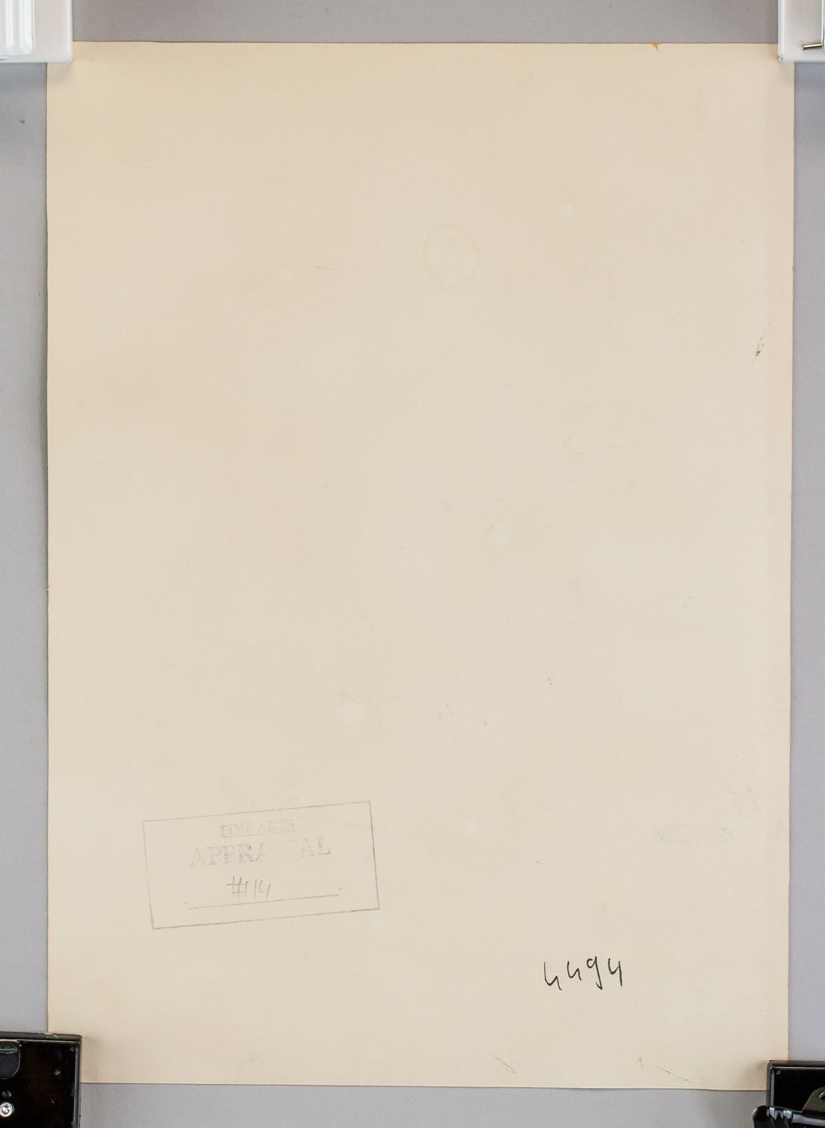 Gouache on paper. Featuring a portrait. Signed illegibly on the lower left corner. Stamped illegibly on verso and inscribed #14 and 4494. 26 x 19 cm (10.25 x 7.5 inches). PROVENANCE: This lot carries limited provenance from a Southern Ontario estate