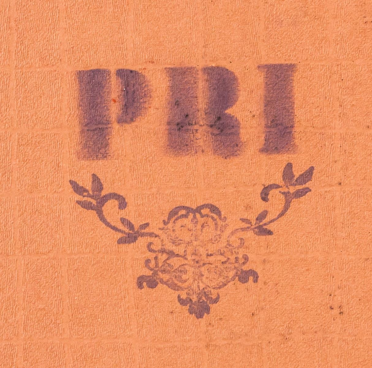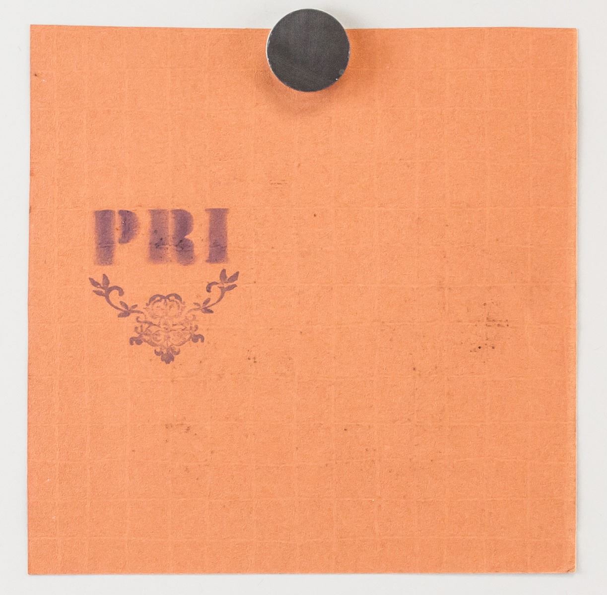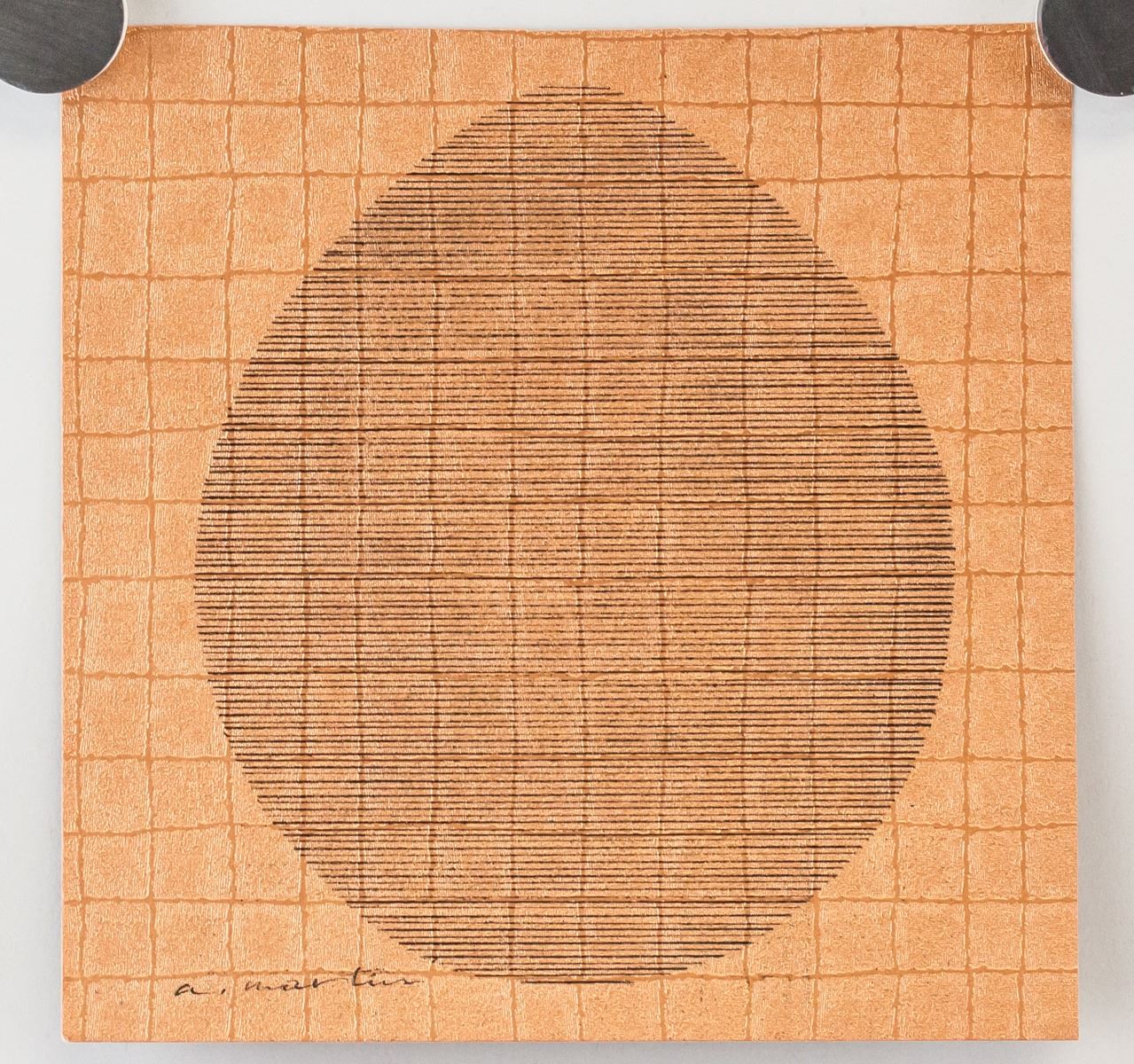 Ink on paper. Featuring tear drop shape on orange grid paper. Signed "A. martin" in the bottom left corner. "PRI" stamped on verso. 16.3 x 16.5 cm (6.5 x 6.5 inches). Provenance: This lot carries limited provenance from a Southern Ontario estate