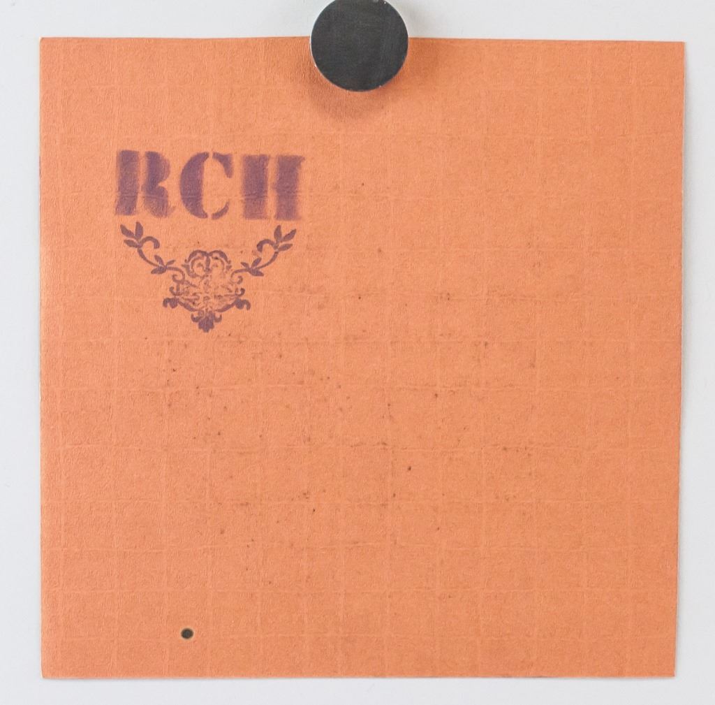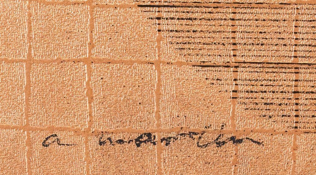Ink on paper. Featuring tear drop shape on orange grid paper. Signed "a. martin" in the bottom left corner. "RCH" stamped on verso. 16.5 x 16.5 cm (6.5 x 6.5 inches)