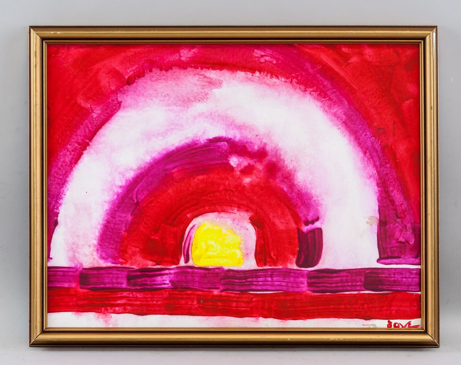 Oil on canvas, framed. Featuring an abstract expressionist composition. Signed Dove on the lower right corner. 37.5 x 49.5 cm (14.75 x 19.5 inches). Framed size: 14.75 x 19.5 inches). Framed size: 41.5 x 53 cm (16.25 x 20.75 inches). PROVENANCE: Southern Ontario estate