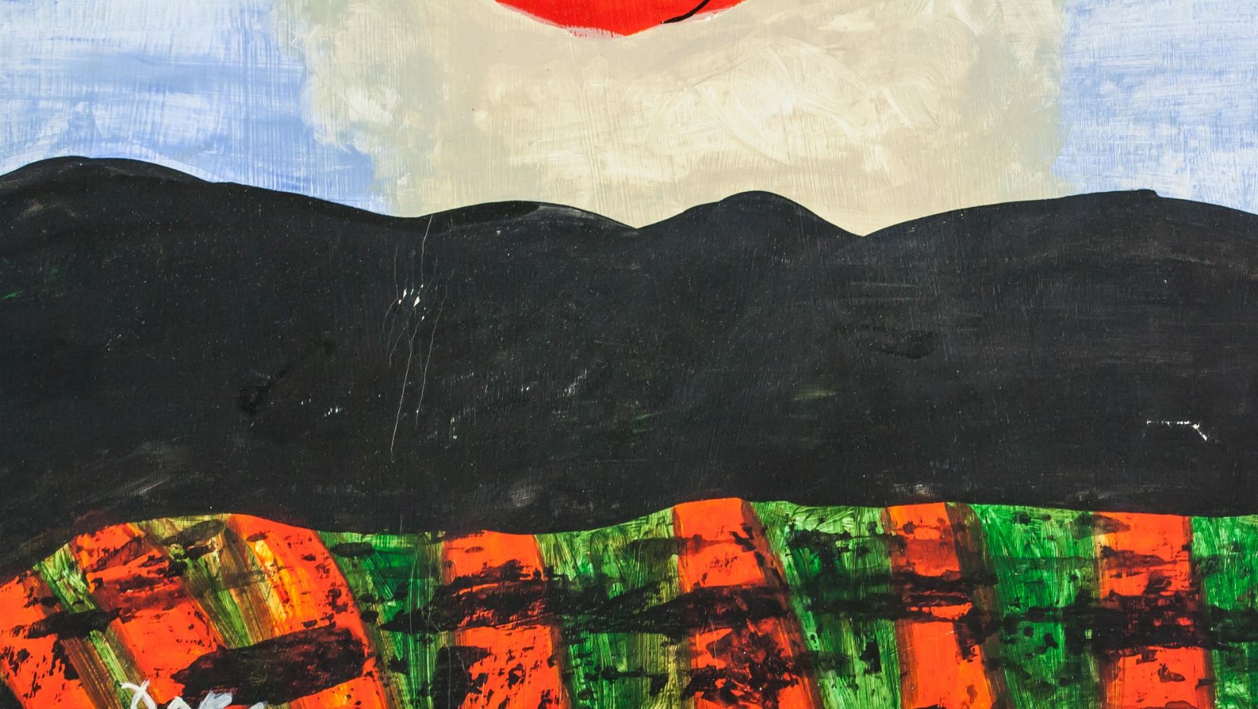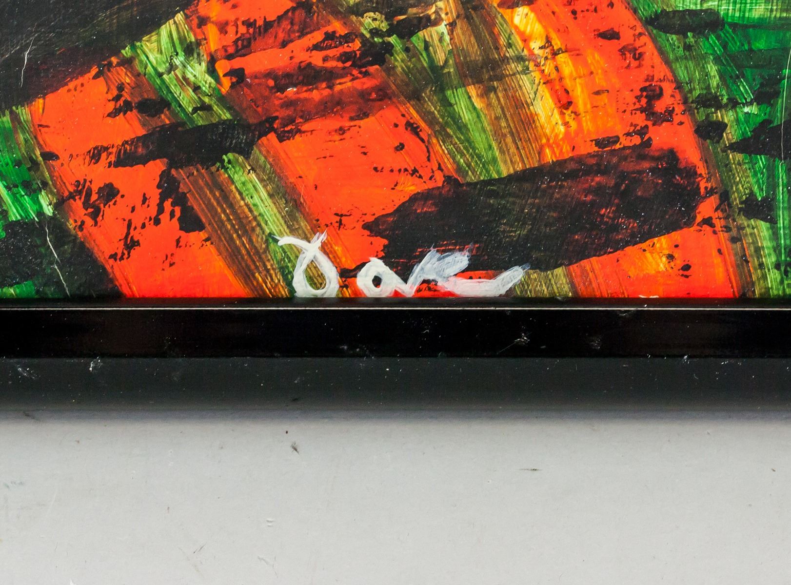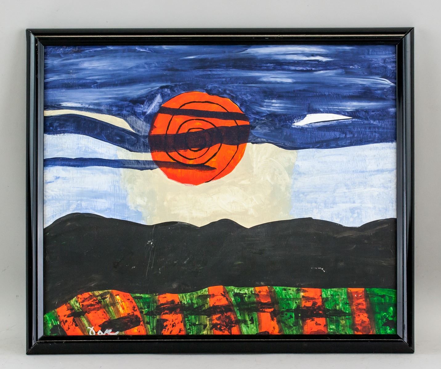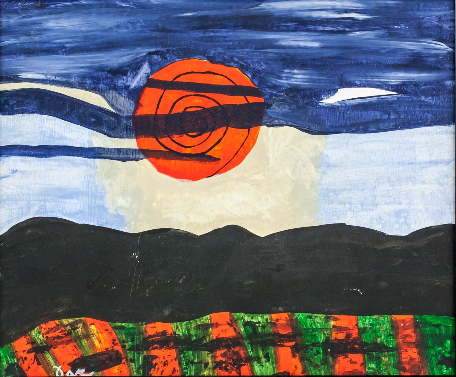 Oil on canvas, framed. Featuring an abstract landscape scene. Signed illegibly on the lower left edge. 40 x 48 cm (15.75 x 19 inches). Framed size: 43 x 51 cm (17 x 20.25 inches). PROVENANCE: Southern Ontario estate