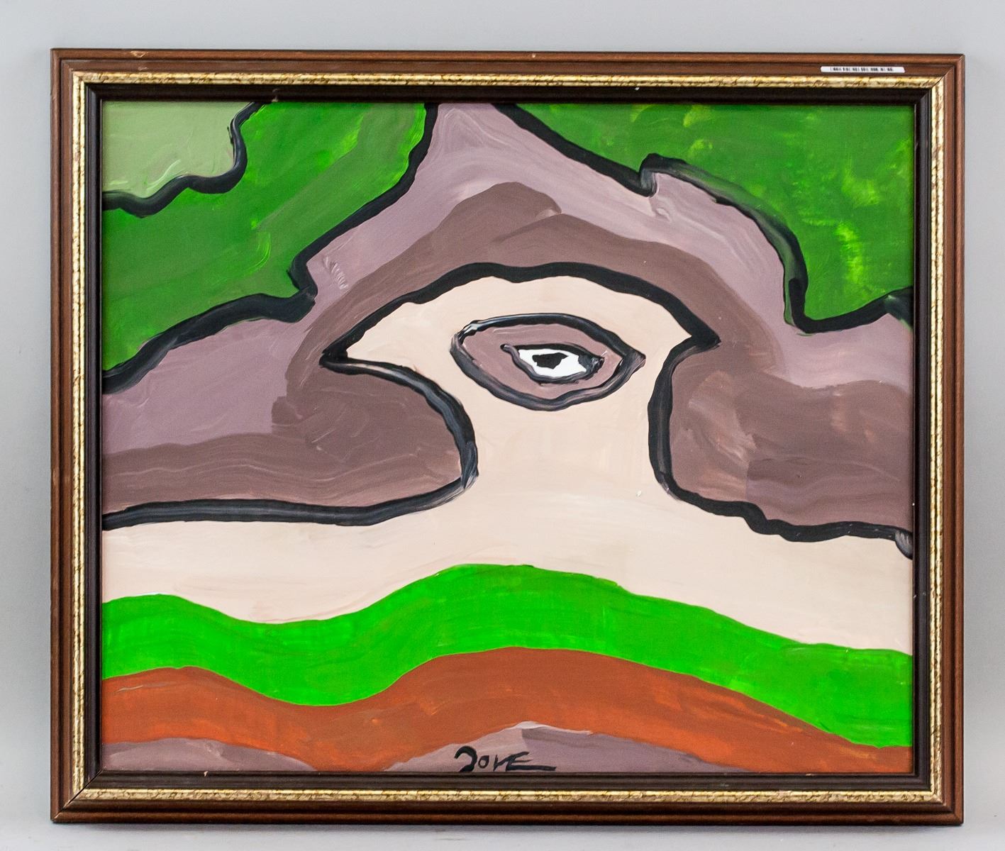 Oil on canvas, framed. Featuring an abstract expressionist composition. Sighed illegibly on lower edge. 37 x 45 cm (14.5 x 17.5 inches). PROVENANCE: Southern Ontario estate