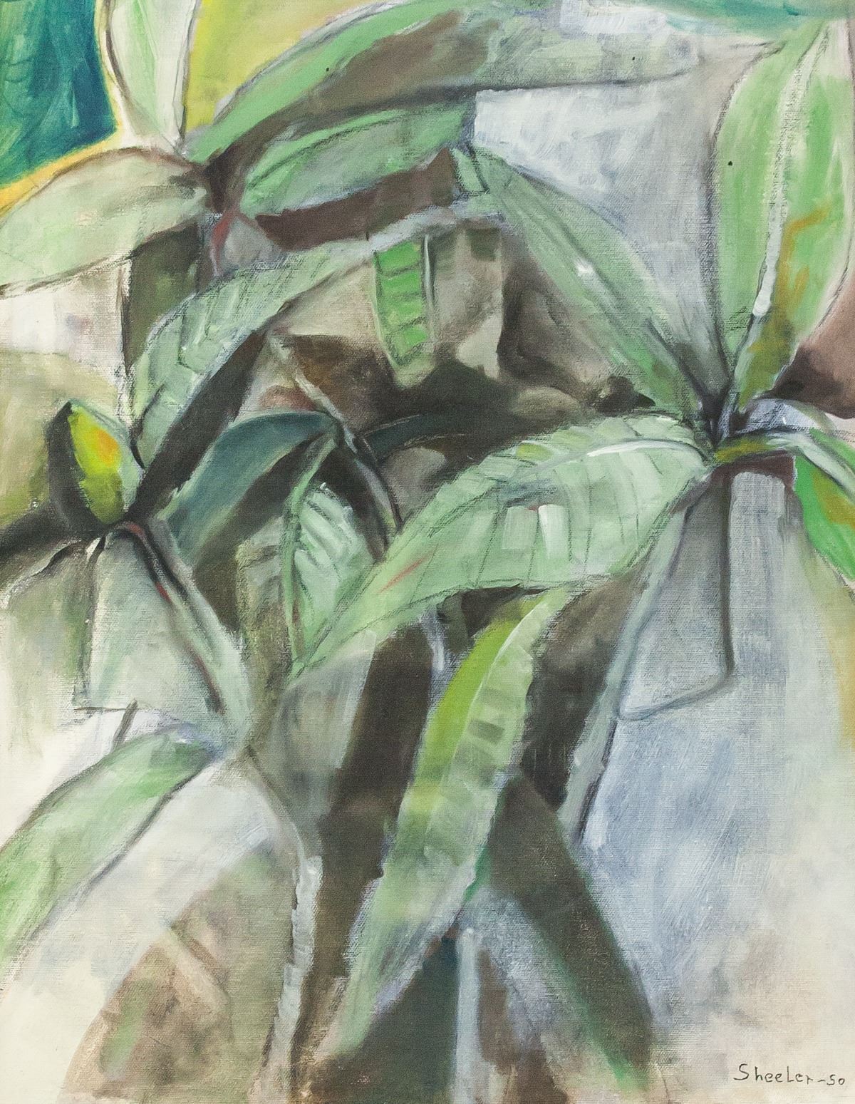 Oil on canvas, framed. Featuring a still life of plants. Signed SheeLer -50 on the lower right corner. 49 x 39 cm (19.5 x 15.5 in), Frame: 58 x 48 cm (23 x 19 in). Provenance: This lot carries limited provenance from a Southern Ontario estate