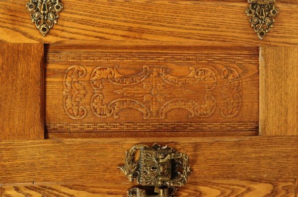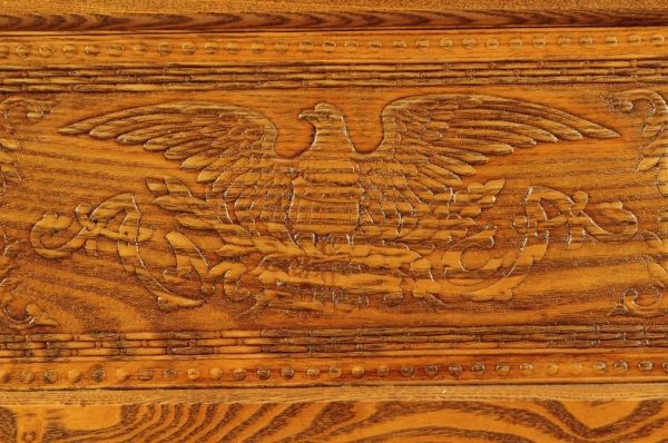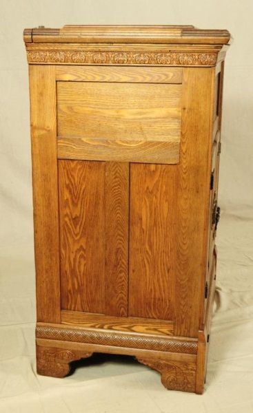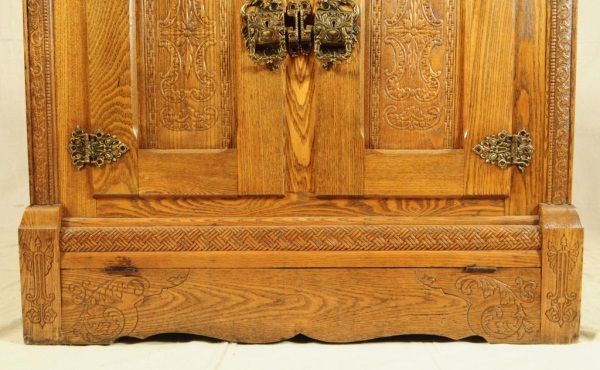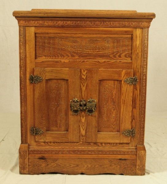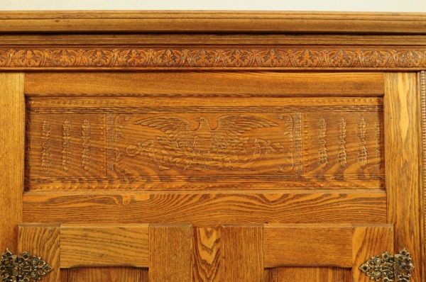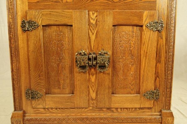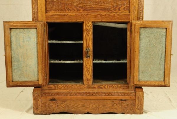 Embossed American Stars, Eagle "american" Embossed On Front Panel Quality Raised Panel Construction Original Interior, Cutout Shields On Ice Reservoir, Original Racks 2 Doors With Ornate Brass Hardware Original Label: "the Bowen Manufacturing Company" Patented June 11, 1883, Professionally Restored. Rare. These Were Possibly Custom Ordered In Limited Numbers For High-end Establishments. Measures 43" Deep X 36" Wide X 47" Tall.