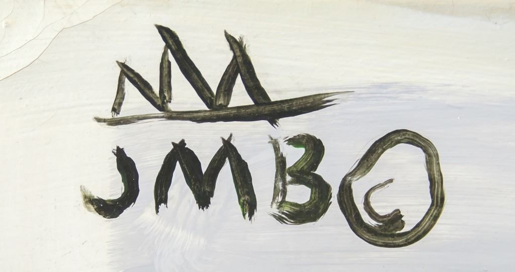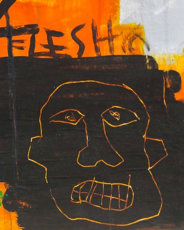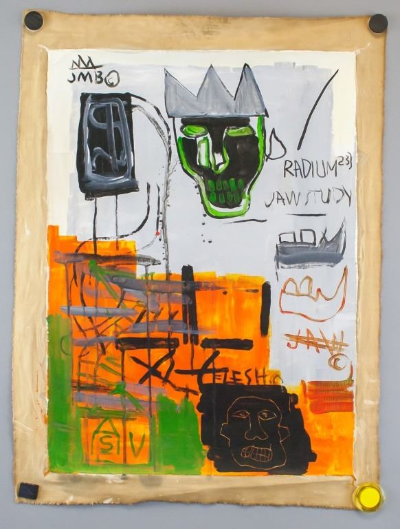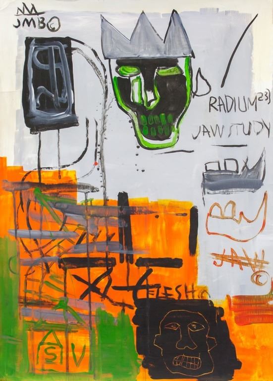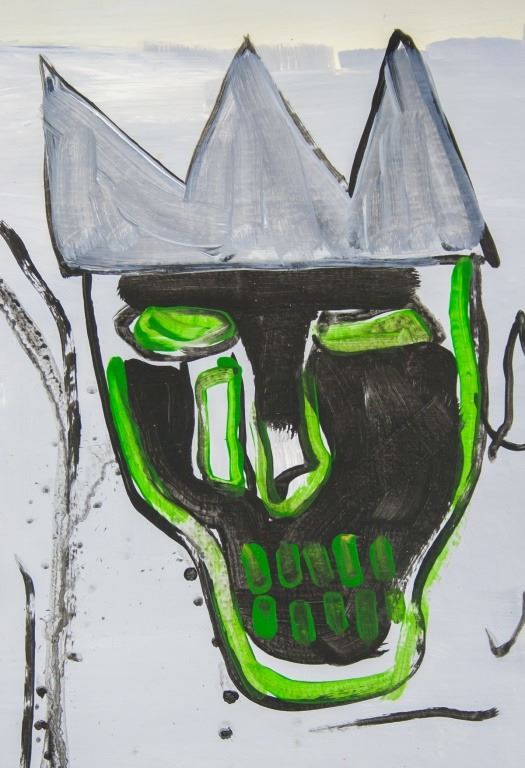 Oil on canvas. Featuring abstract composition with a skull wearing a crown. Signed "JMB" to the top left corner. 55 x 39 cm (22 x 15.5 inches).