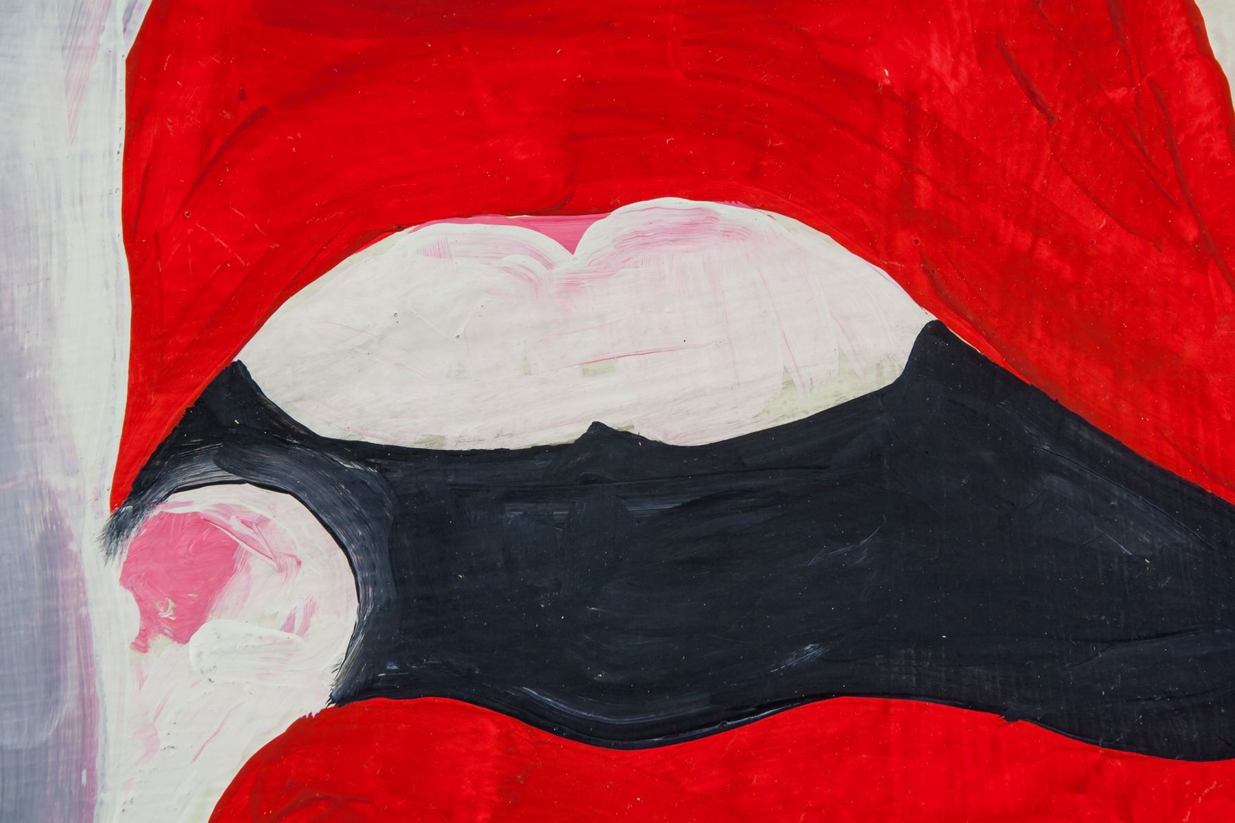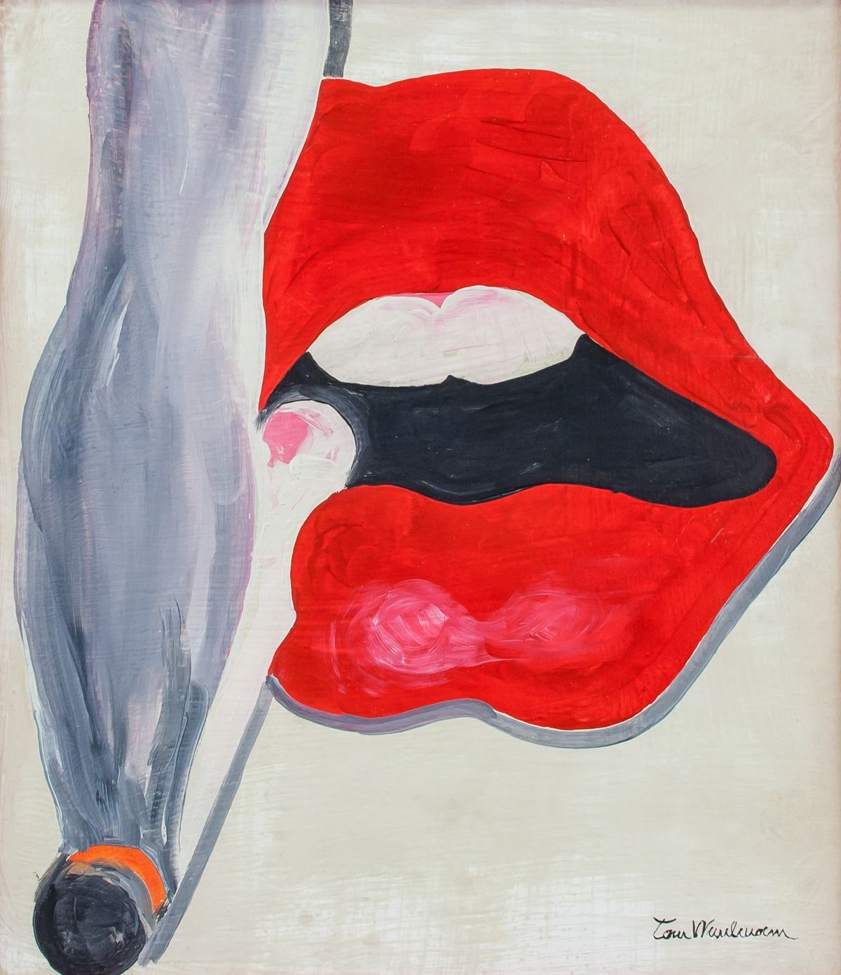 Oil on canvas, framed. Featuring a mouth cradling a cigarette. Signed with artist's signature, "Wesselmann" on the lower right corner. 140 x 46 cm (15.8 x 18.2 inches). PROVENANCE: Private European estate.