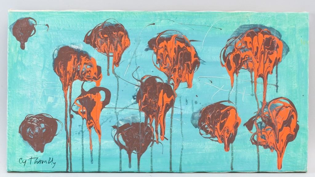 Oil on canvas. Featuring bundles of dripping paint. Signed "Cy Twombly" to the bottom left. 31 x 59 cm (12 x 23 inch). Provenance: This lot carries limited provenance from a Southern Ontario estate