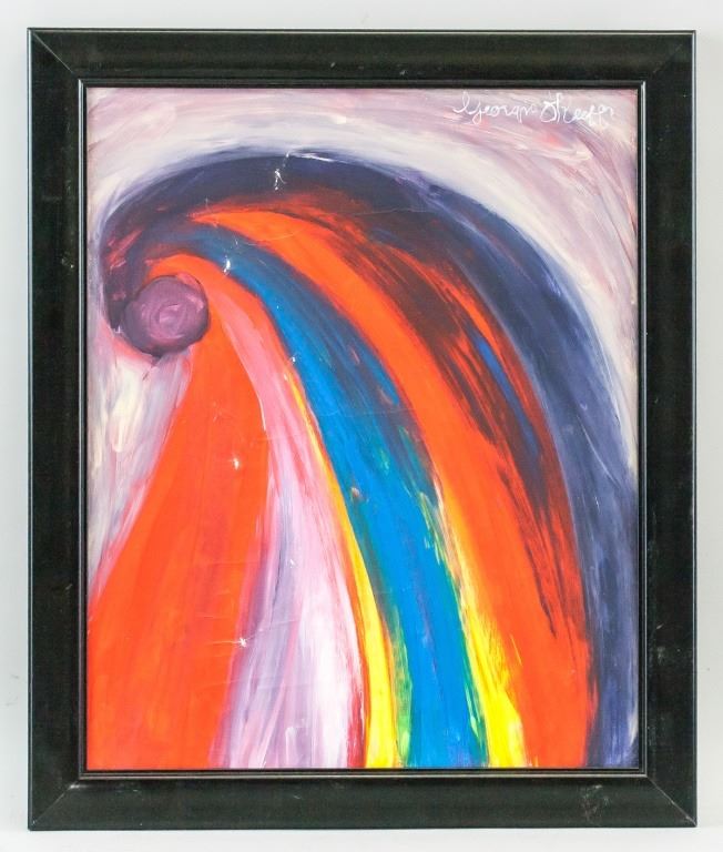Oil on canvas, framed. Featuring an abstract composition. Signed Georgia O'Keeffe on the upper right corner. 43 x 35 cm (17 x 14 inches). Framed size: 49 x 41 cm (19.5 x 16 inches). Provenance: This lot carries limited provenance from a Southern Ontario estate