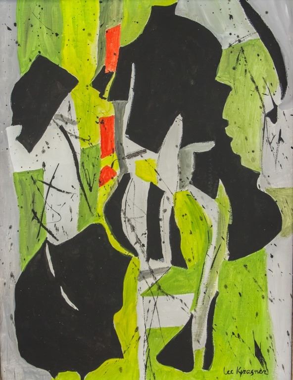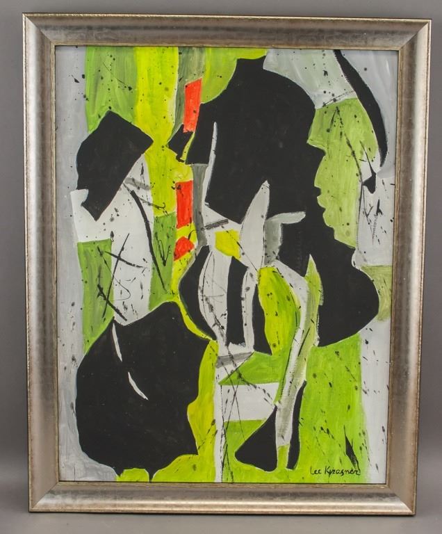 Oil on canvas, framed. Featuring abstract composition. Signed "Lee Krasner" to the bottom right corner. 51 x 39 cm (20 x 15.3 inch) F: 58 x 46 cm (23 x 18 inch).