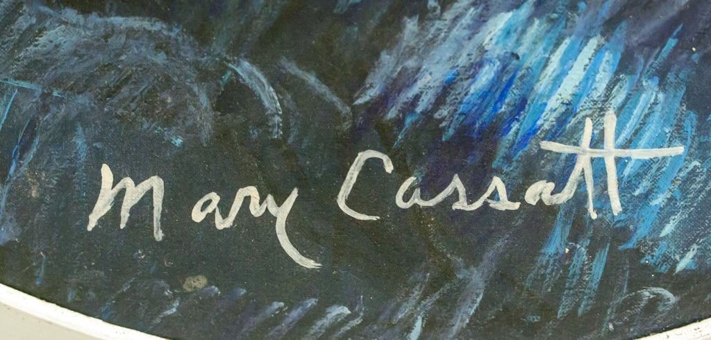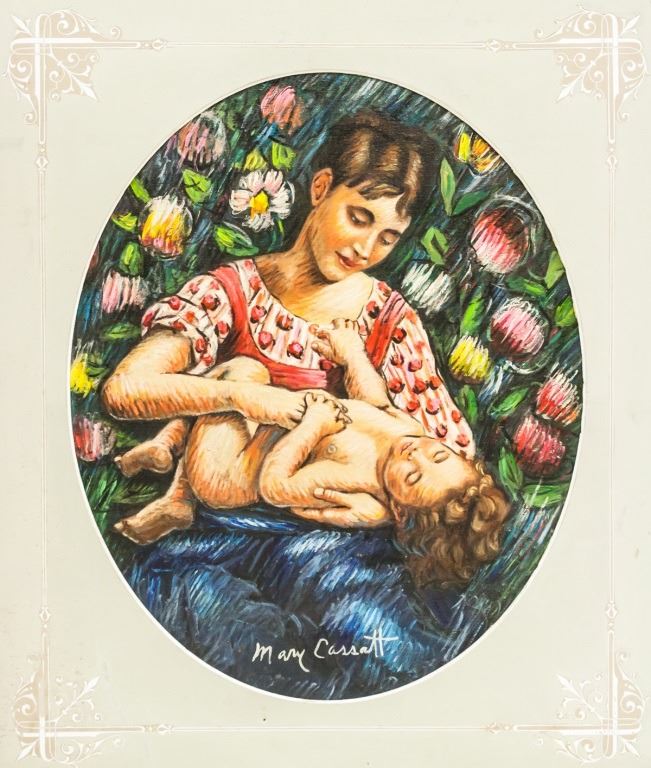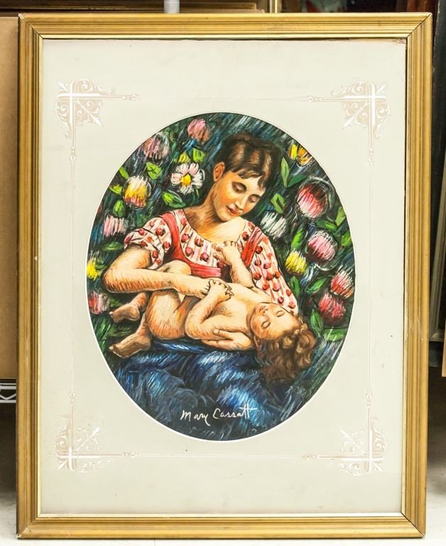 Oil on canvas, framed. Featuring mother with child. Signed "Mary Cassatt" near center bottom. Round seal on verso. Stamped with "MUSEE d'ORSAY PARIS" and "ARTWORK REGISTRY". Canvas size: 58 x 48 cm (22.75 x 19 inches). Frame size: 86 x 67 cm (33.75 x 26.5 inches).