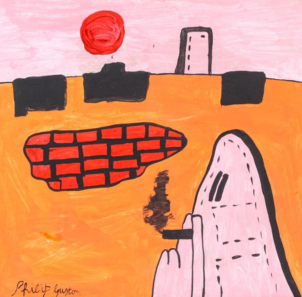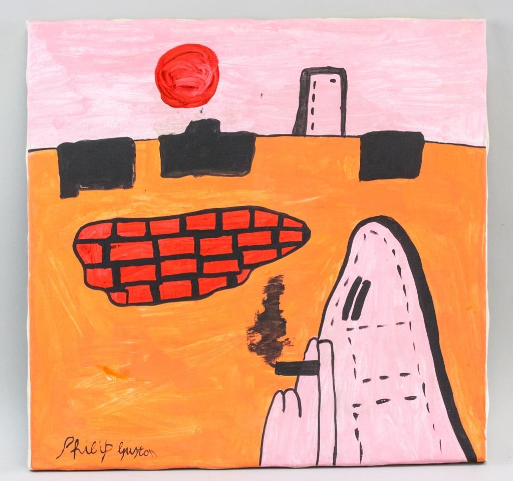Oil on canvas. Featuring a hooded figure. Signed Philip Guston on the lower left corner. 41 x 42 cm (16 x 16.5 inches). Provenance: This lot carries limited provenance from a Southern Ontario estate