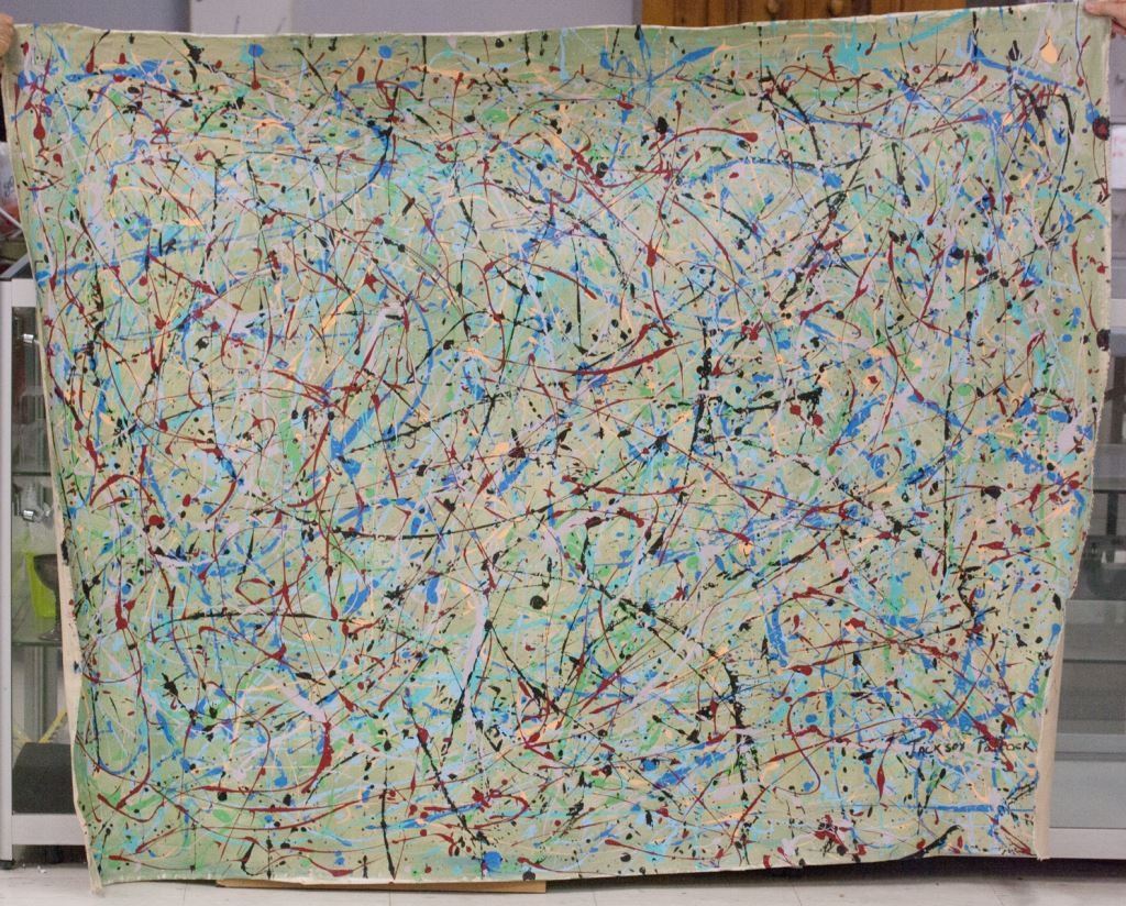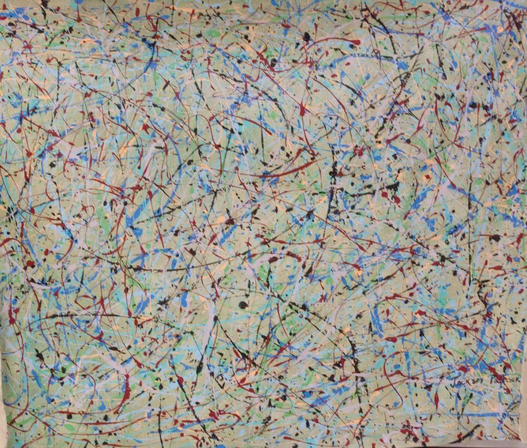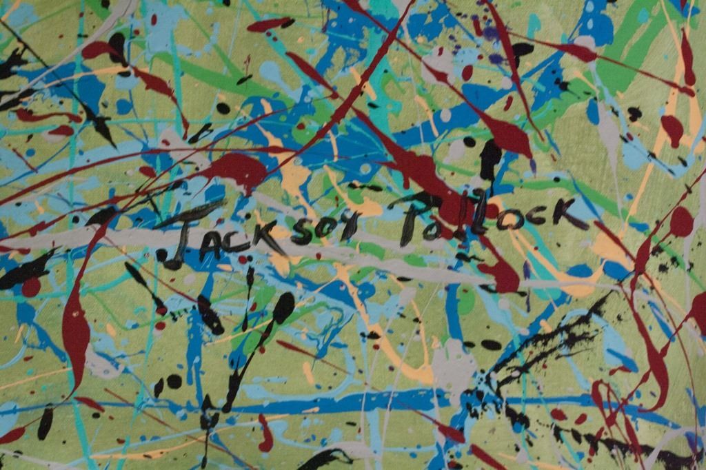 Oil on canvas. Featuring abstract composition. Signed "Jackson Pollock" in the bottom right corner. 126 x 164 cm (49.5 x 64.5 in). 126 x 164 cm (49.5 x 64.5 in).