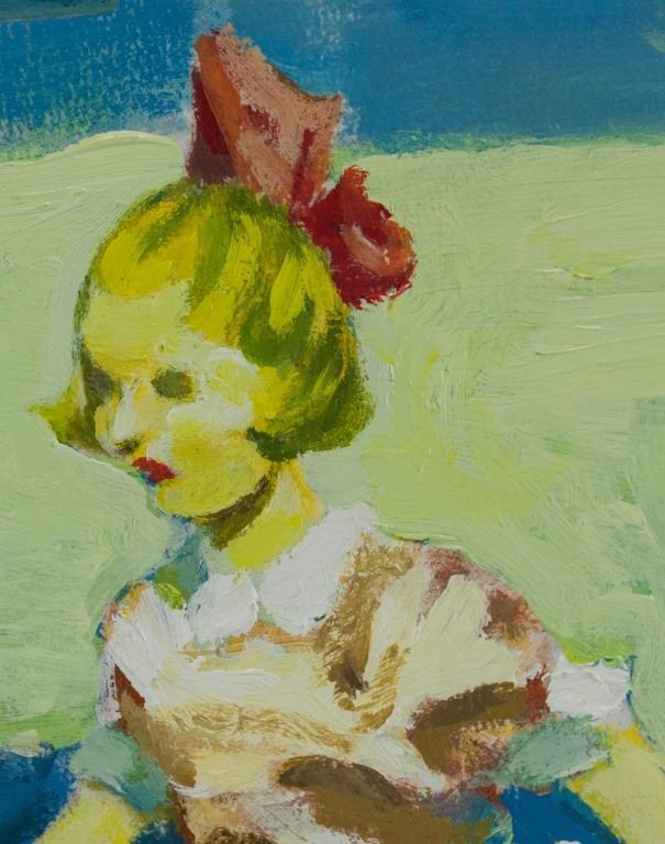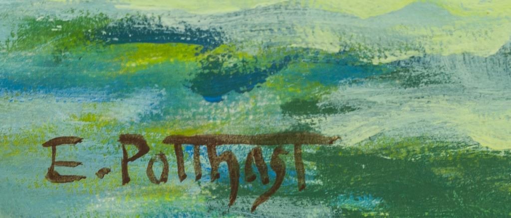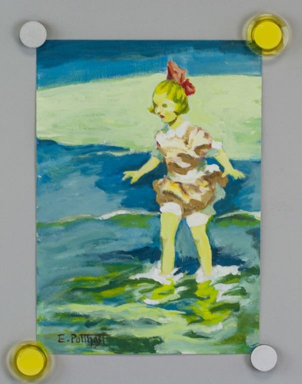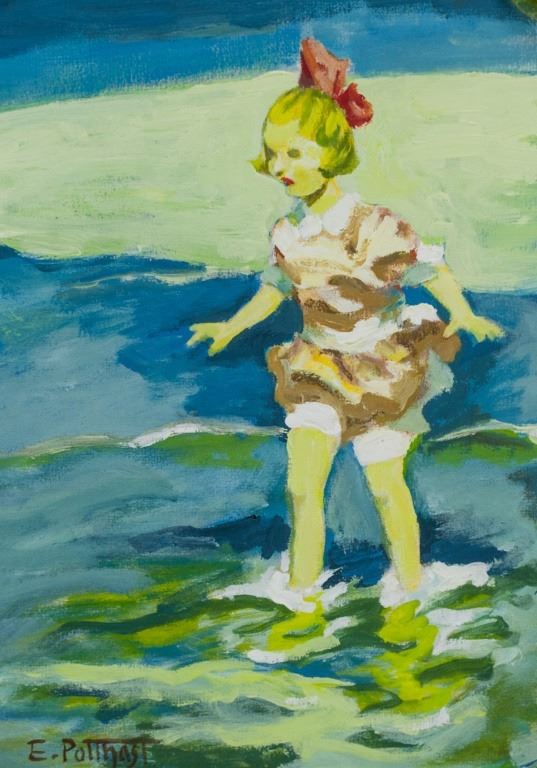 Oil on paper. Featuring an impressionist portrait scene of a woman wading in the sea. Signed E. Potthast on the lower left corner. 29.5 x 21 cm (11.75 x 8.25 inches)