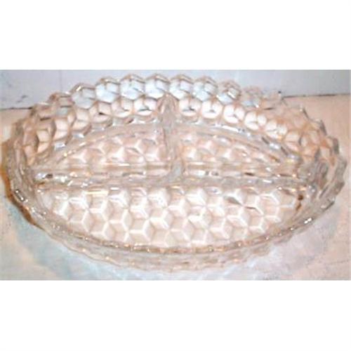 This vintage Crystal American Pattern three Part Relish Dish is in SUPERIOR condition with no chips, cracks, or dings. It measures 10.50" long and is 6.75" wide and stands 2" tall. We guarantee this to be VINTAGE American.